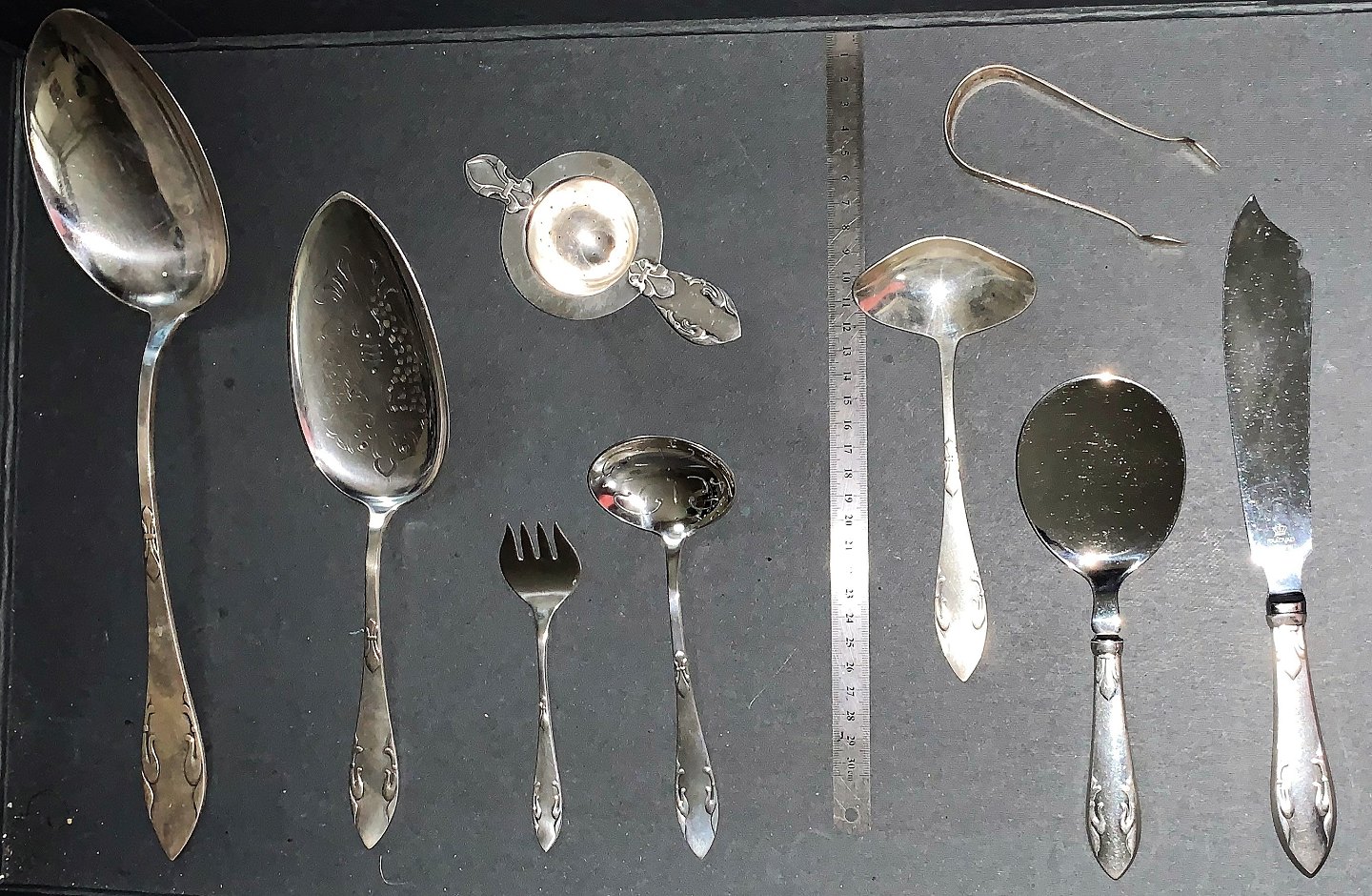 Vi et stort udvalg af serveringsdele og andre specielle dele i Delt Lilje sølvbestik.