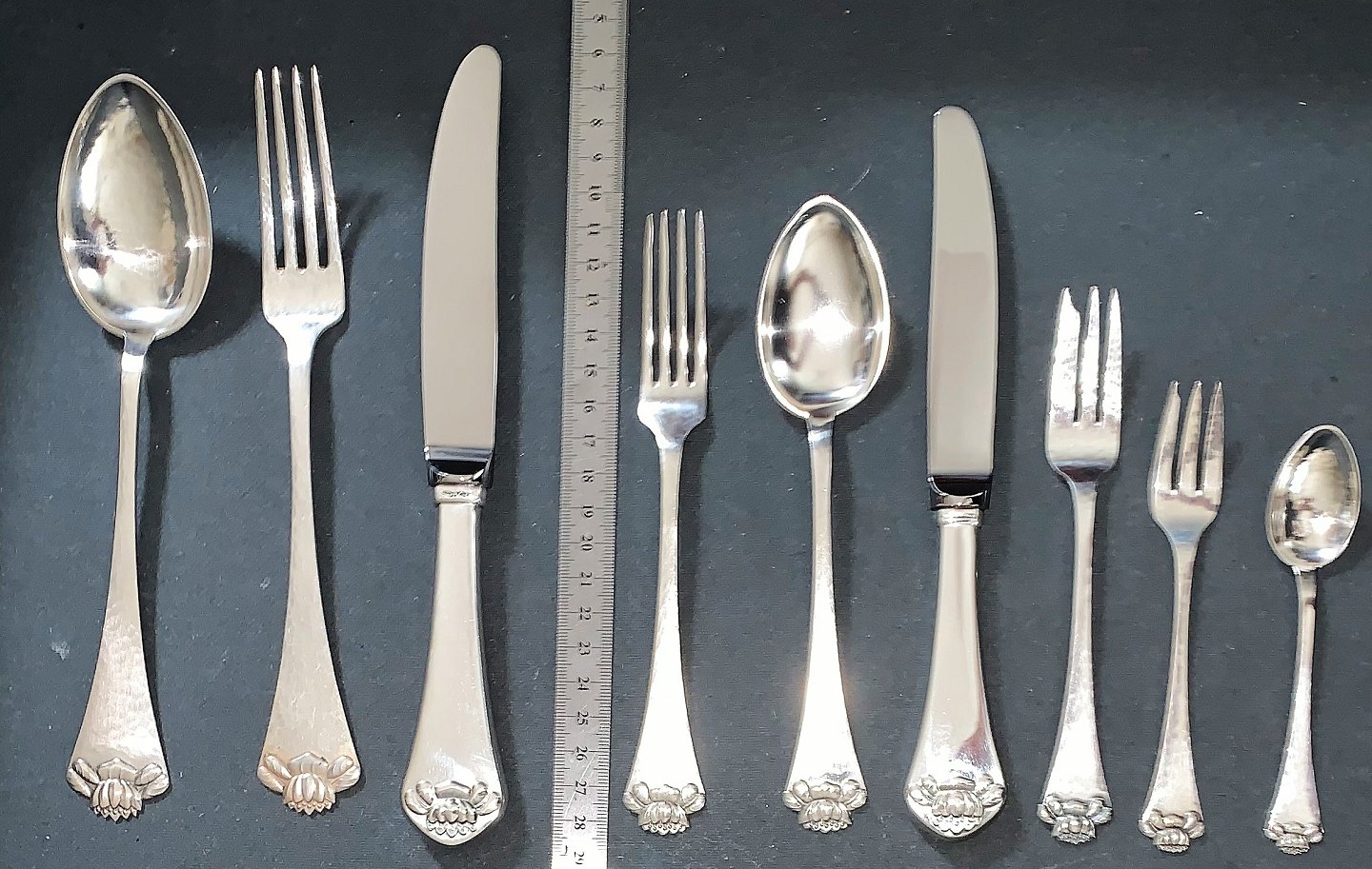 Åkande bestik i sølv.