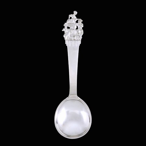 H.C. Andersen Eventyrbestik. 'Svinedrengen'. Rund barne/dessert i sølv med motiv fra H.C. Andersens eventyr. L. 14,5 cm.