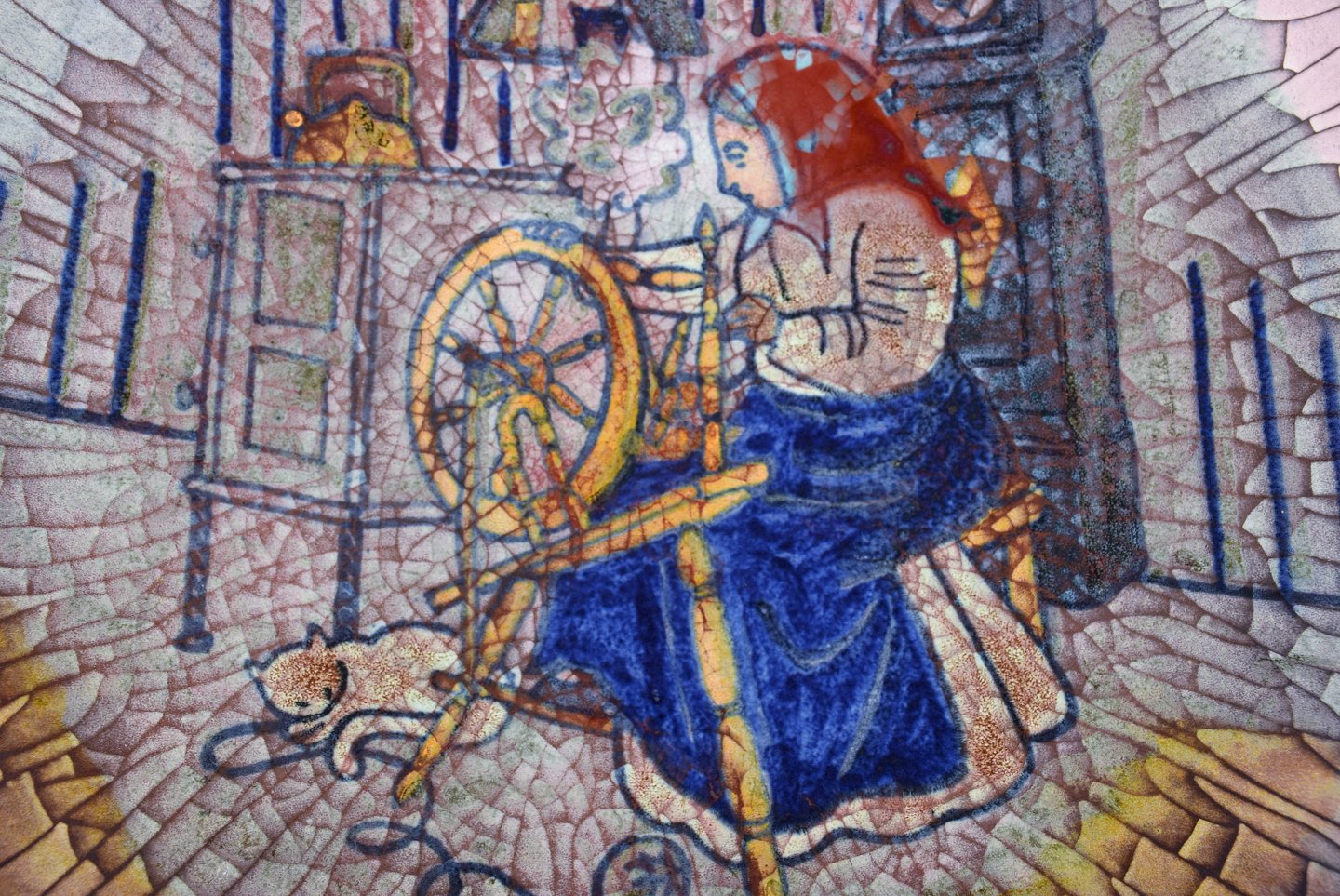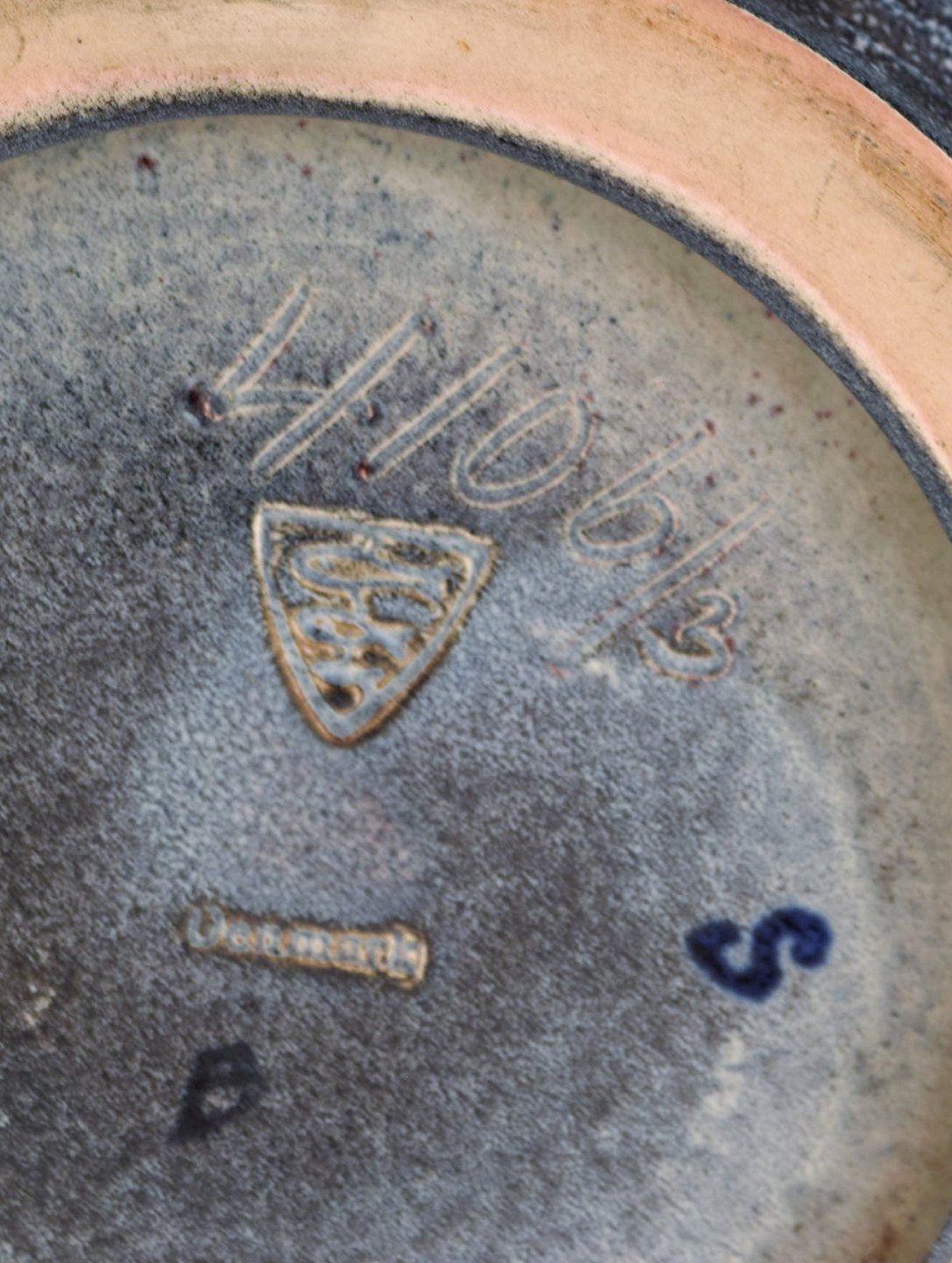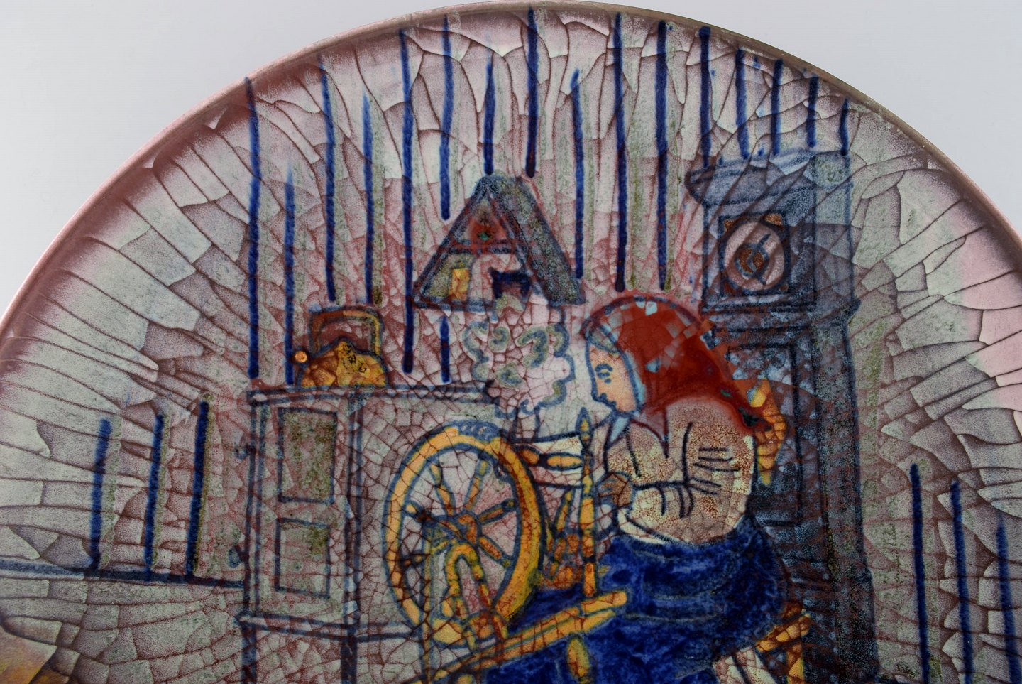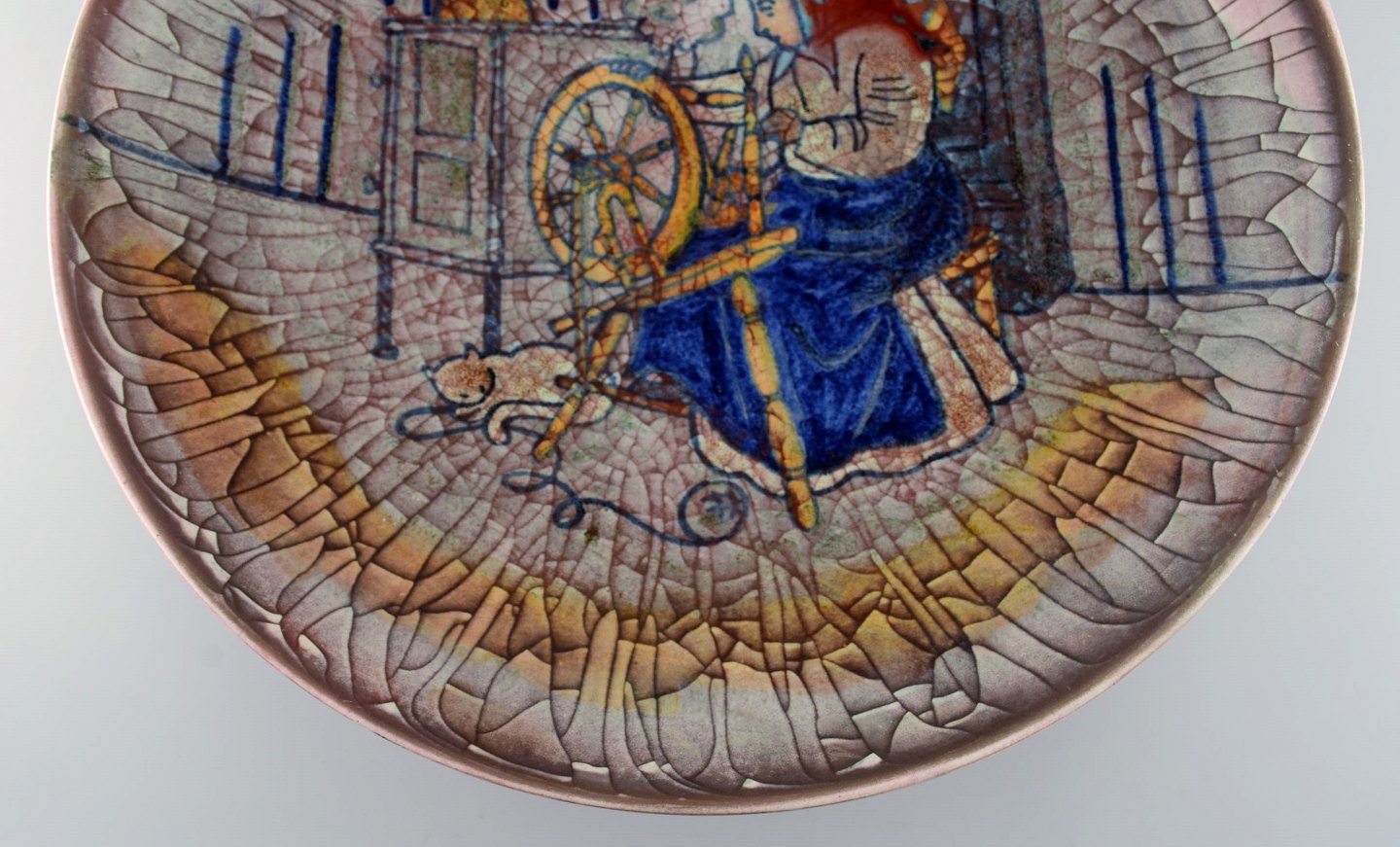 Michael Andersen, Bornholm. Stor skål i glaseret keramik med væverske. Smuk krakkeleret glasur. 1950'erne.