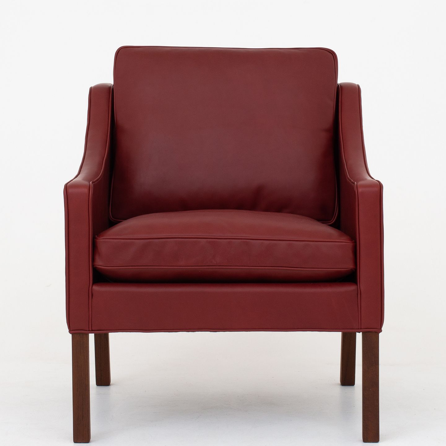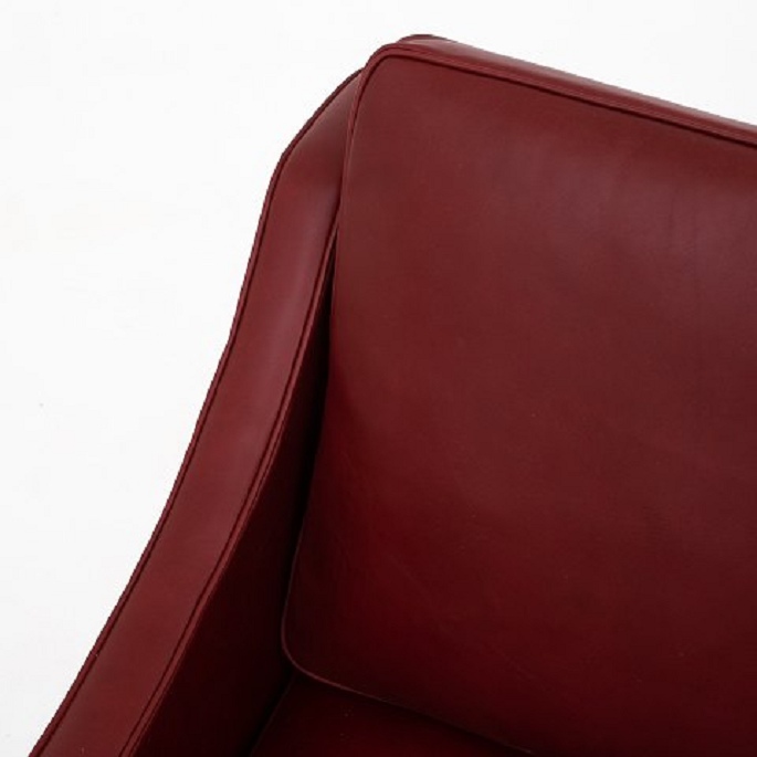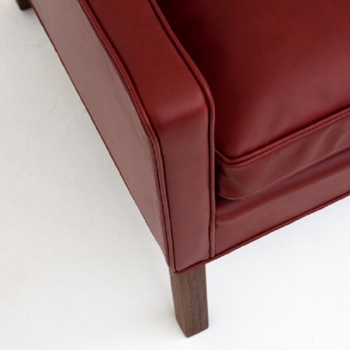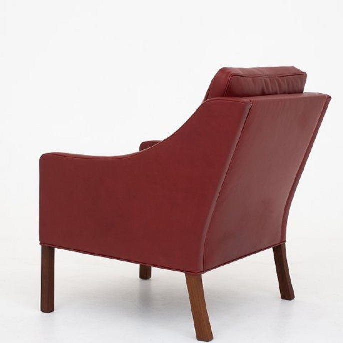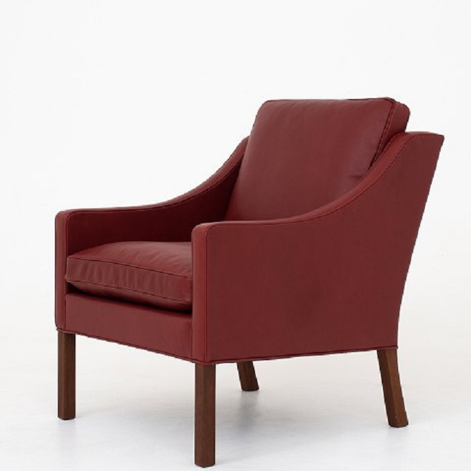 BM 2207 - Nybetrukket lænestol i Elegance-læder (farve: Indian Red) med ben i teak.