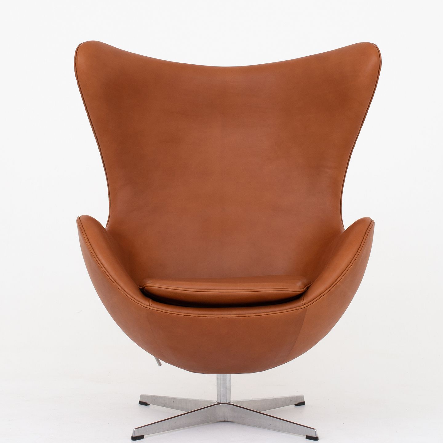 AJ 3316 - Nybetrukket 'Ægget' lænestol i Elegance Walnut-læder med fod af aluminium.