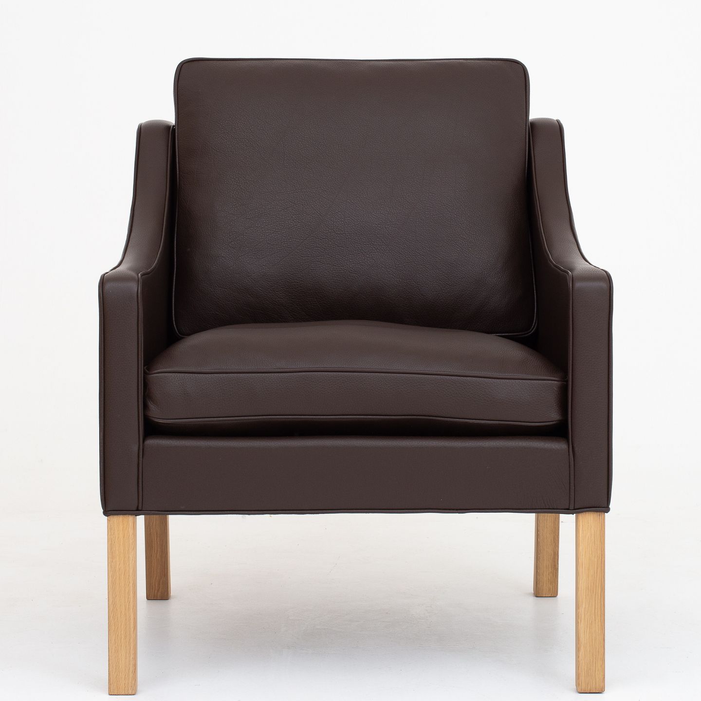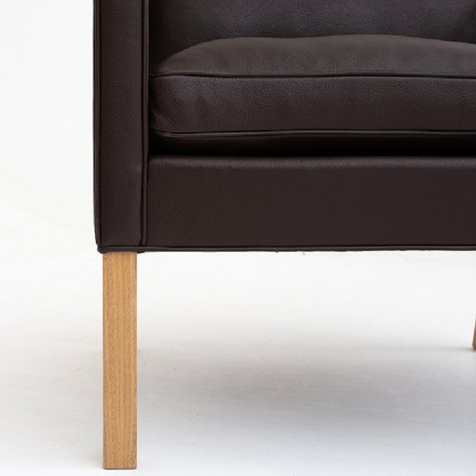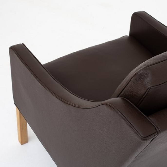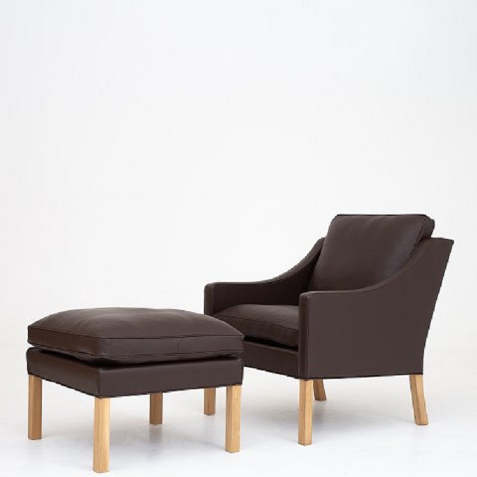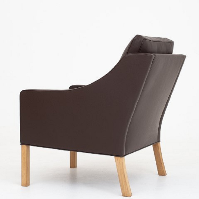 BM 2207 - Nybetrukket lænestol i Prestige Coffee-læder med ben i eg.