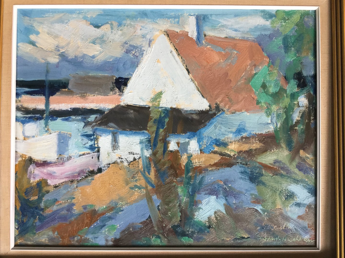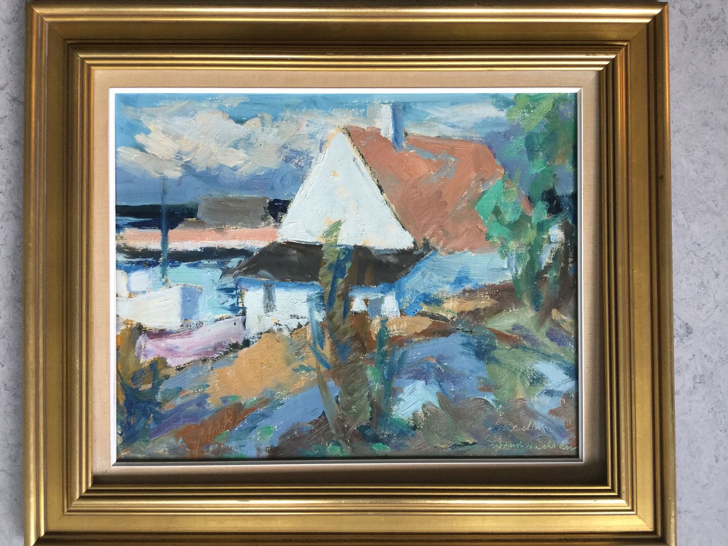 Maleri af Svend Nielsen - Parti fra Gudhjem, Bornholm.