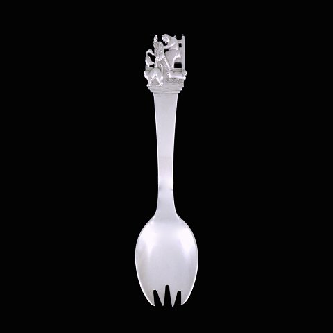 H.C. Andersen Eventyrbestik. 'Den grimme ælling'. Skegaffel i sølv med motiv fra H.C. Andersens eventyr. L. 14,2 cm.