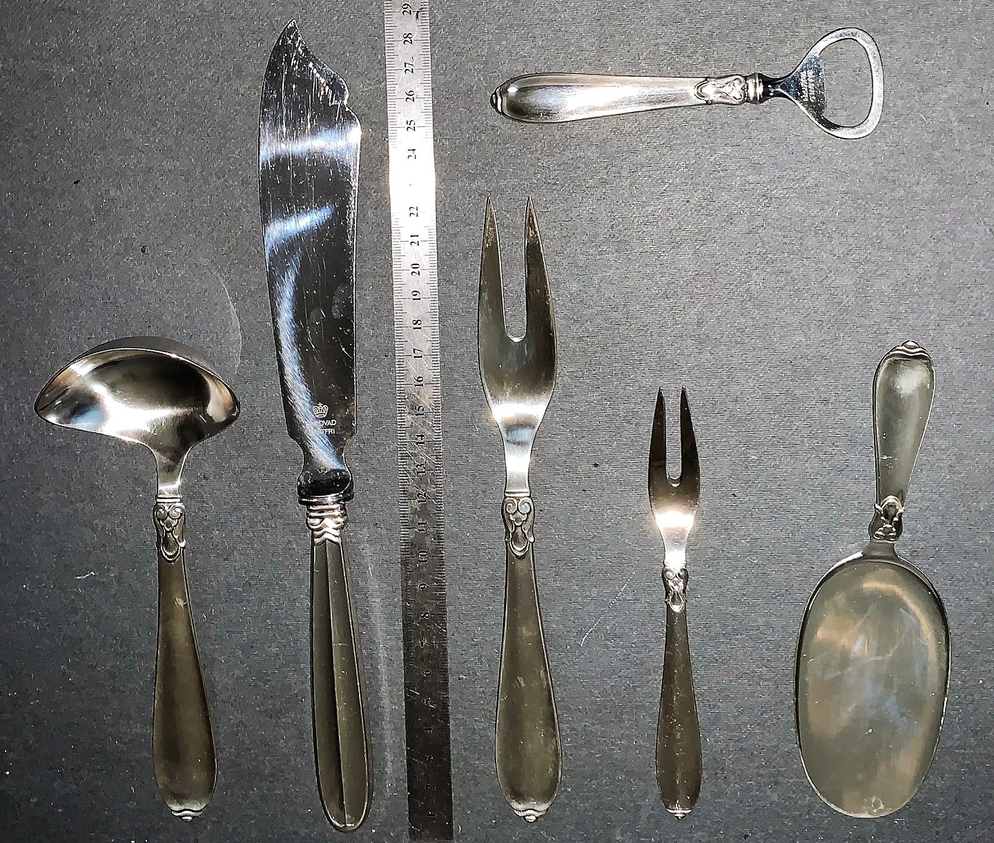 Vi et stort udvalg af serveringsdele og andre specielle dele i Øresund sølvbestik.