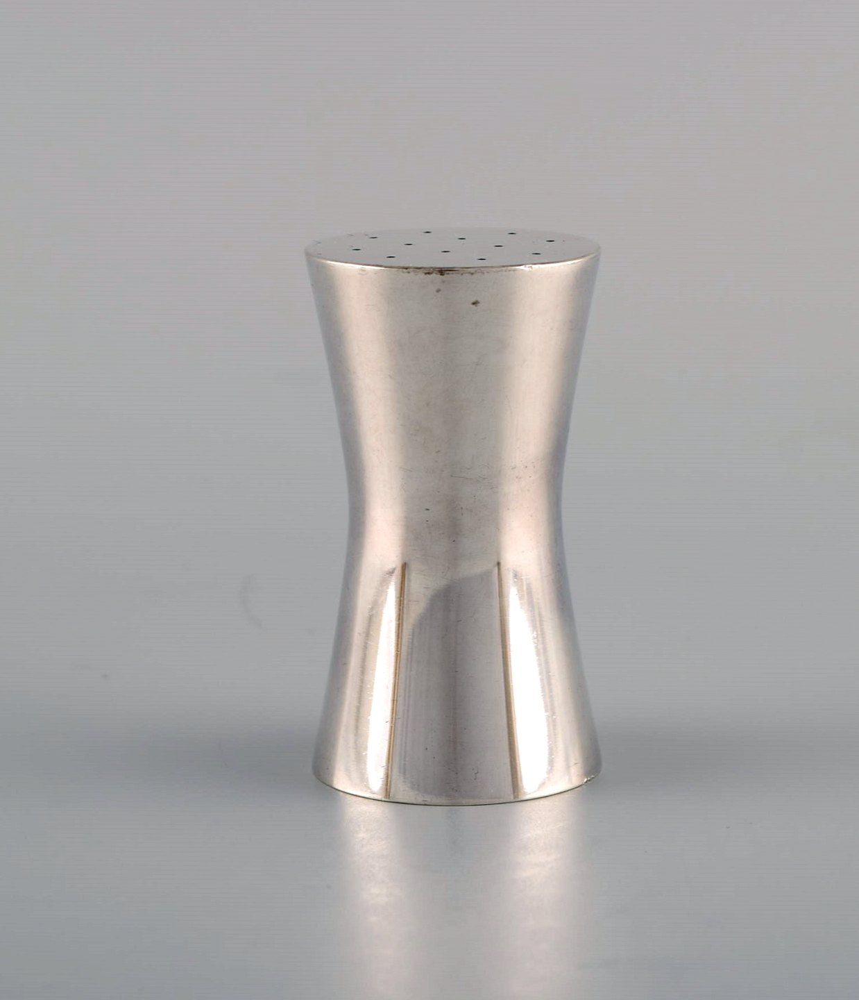 Modernistisk Hans Hansen for Georg Jensen saltbøsse i sterlingsølv. 1960'erne.