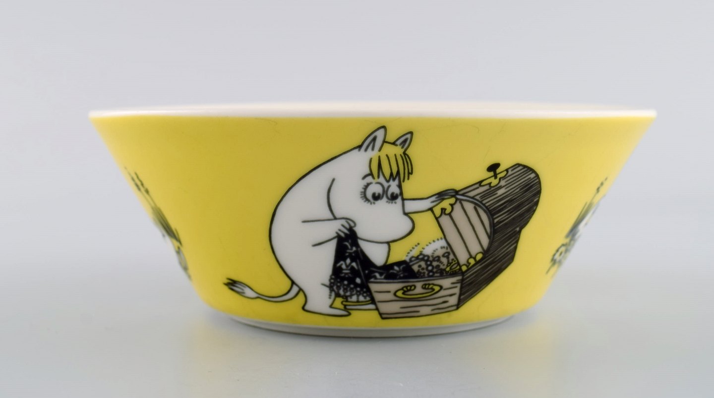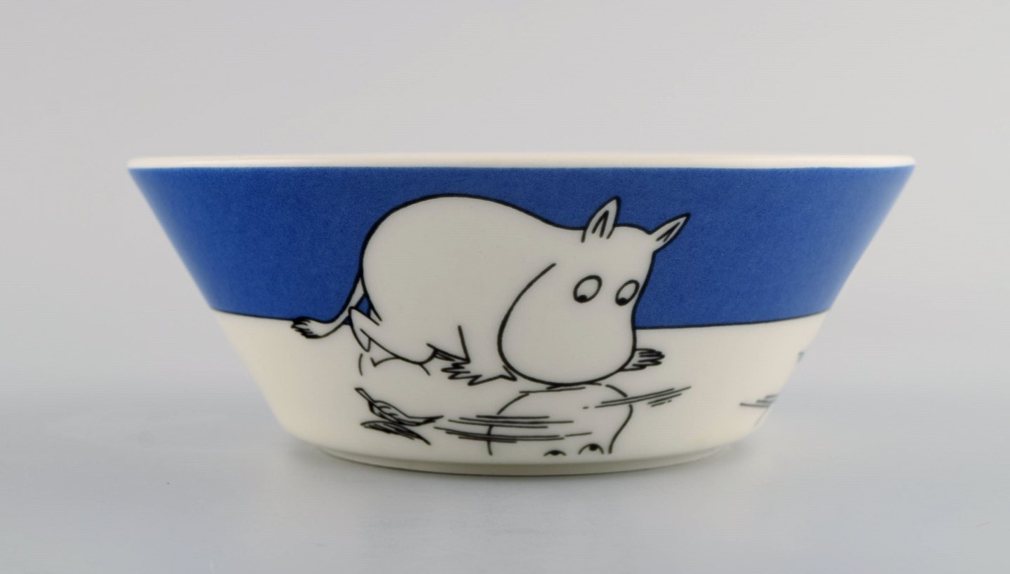 Arabia, Finland. Fire skåle i porcelæn med motiver fra Mumitroldene. Sent 1900-tallet.