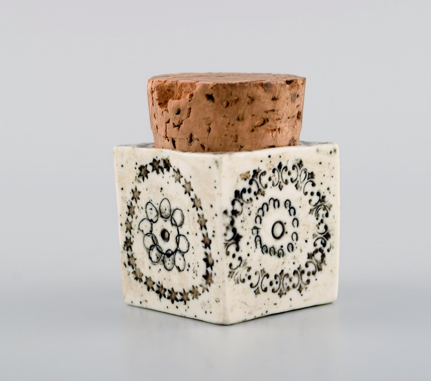 Linnea Rut Bryk (1916-1999), Finland. Sjælden unika krukke i glaseret stentøj med korkprop. 1950'erne.