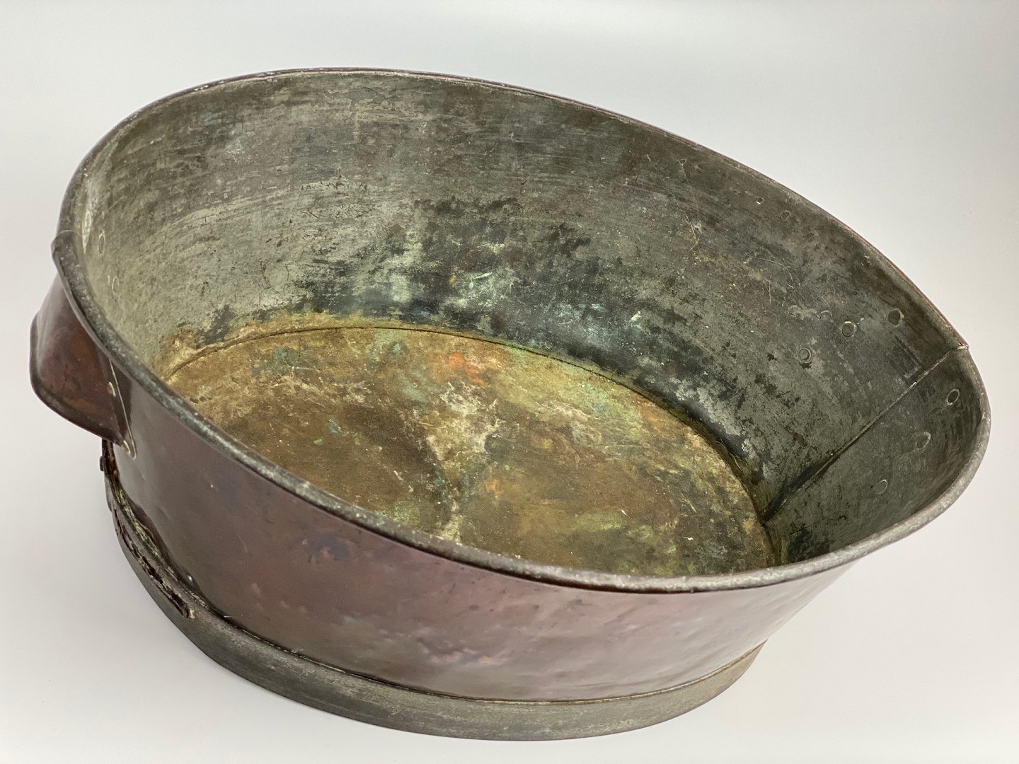 Smuk, svensk kobber balje, der kan bruges til at plante i. Masser af patina. Vi har ikke testet, om den kan holde vand.