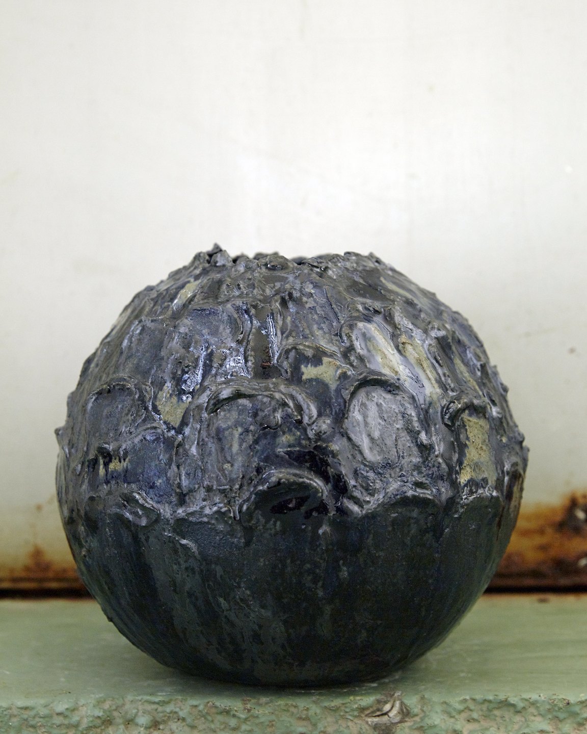 Christina Muff, dansk samtidskeramiker (f. 1971). Vase af gråt stentøjsler med lava fra Christina Muff’s ‘Seed’ serie. Vasen er