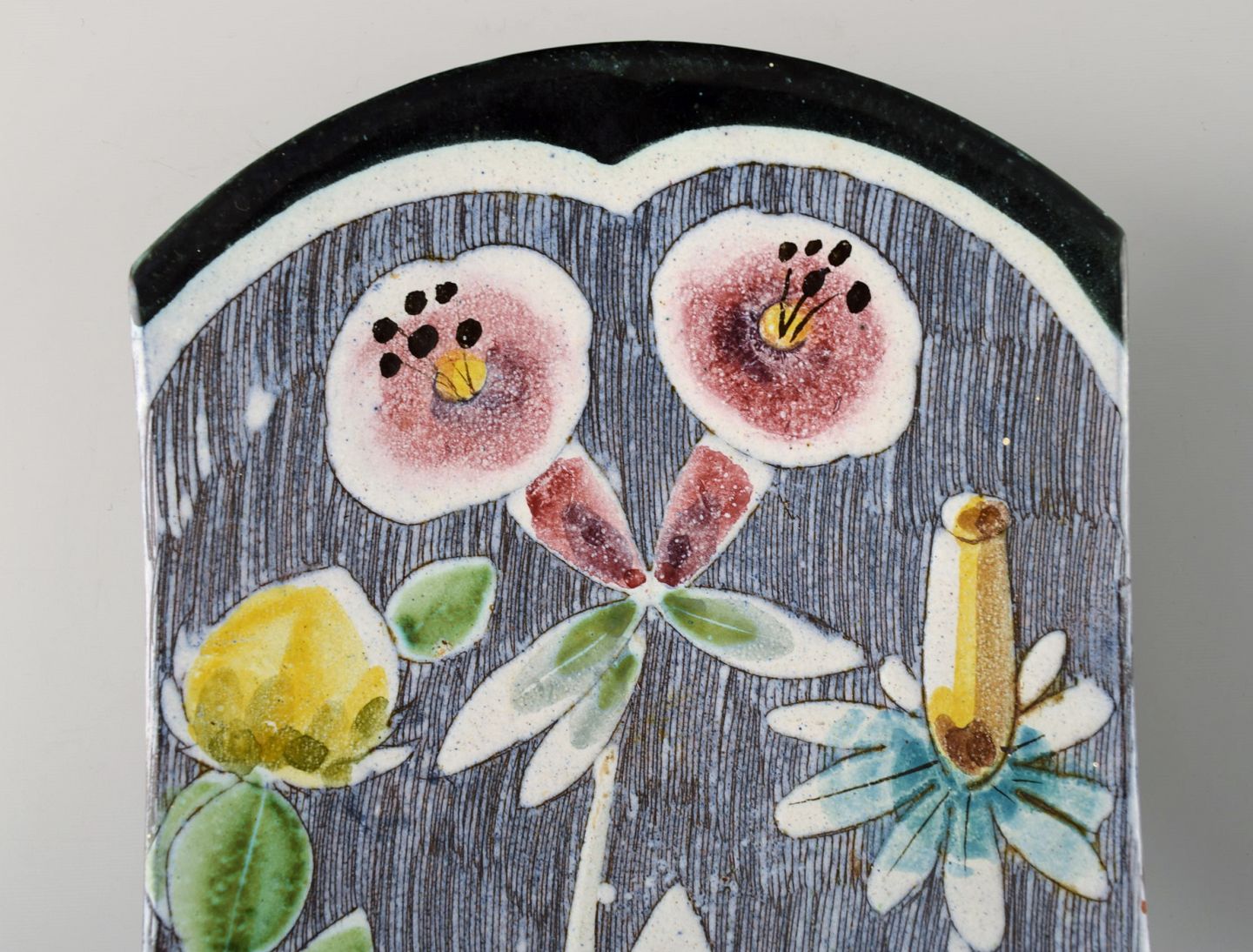 Tilgmans, Sverige. En samling glaseret keramik dekoreret med piger og blomstermotiver. 1960'erne.