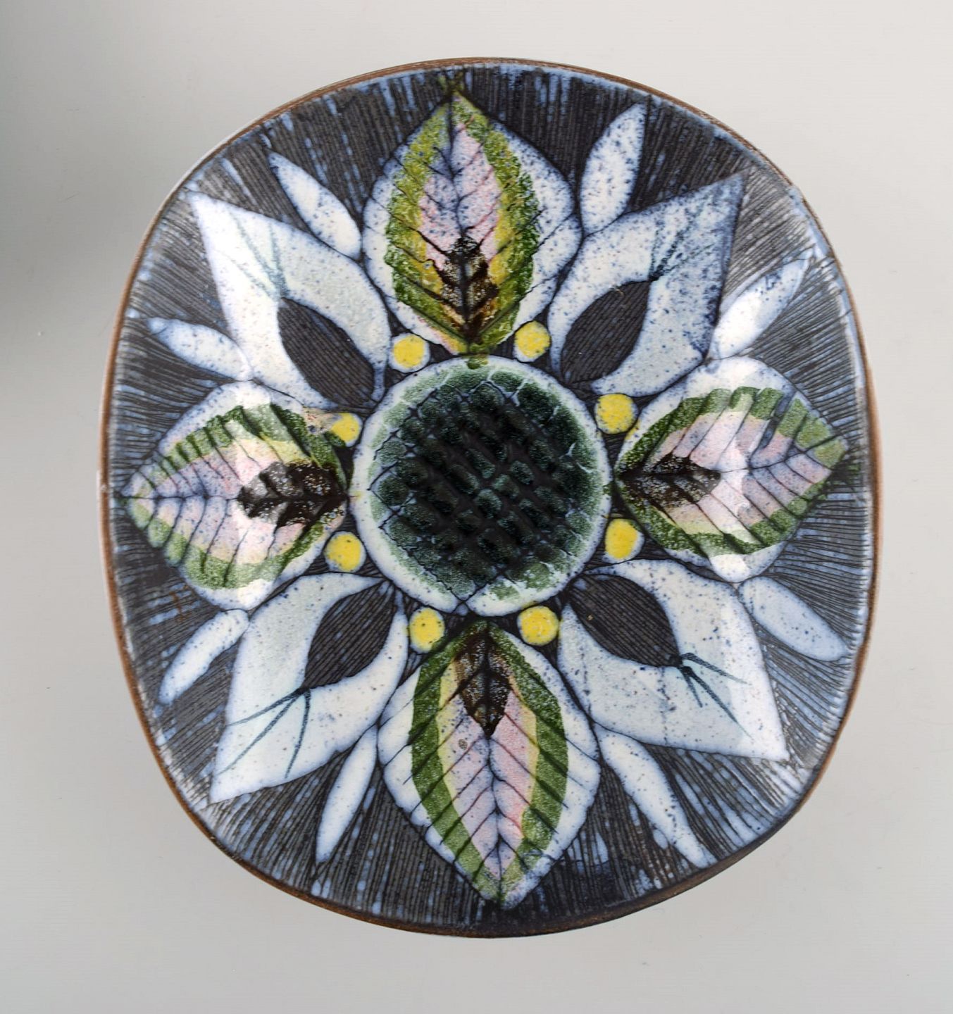 Største fad måler: 21 x 15 x 3,5 cm.