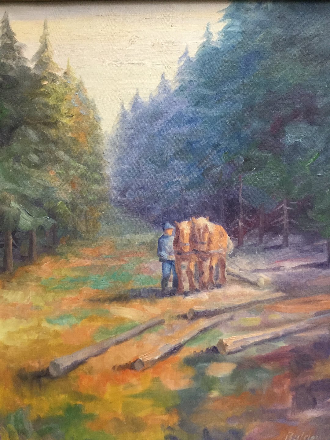 Maleri - Skovarbejder og heste.