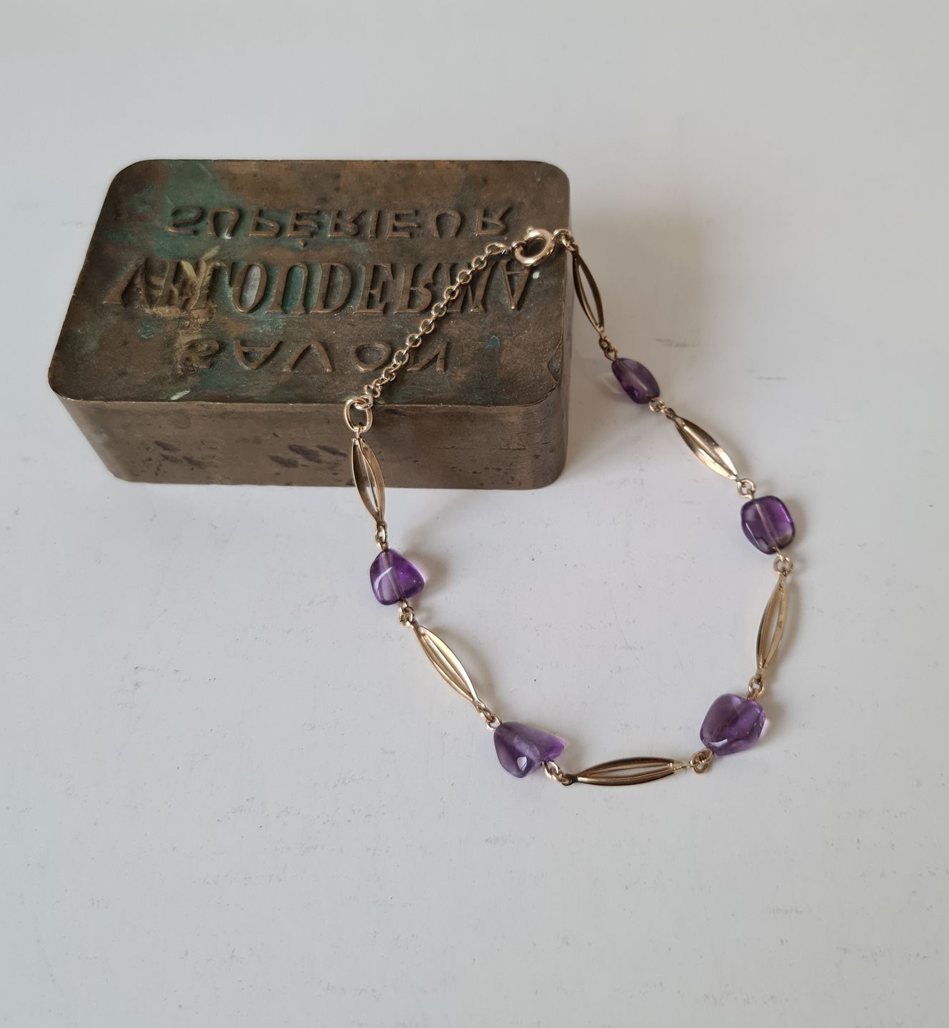 Vintage armlænke i 8 kt guld med ametyst