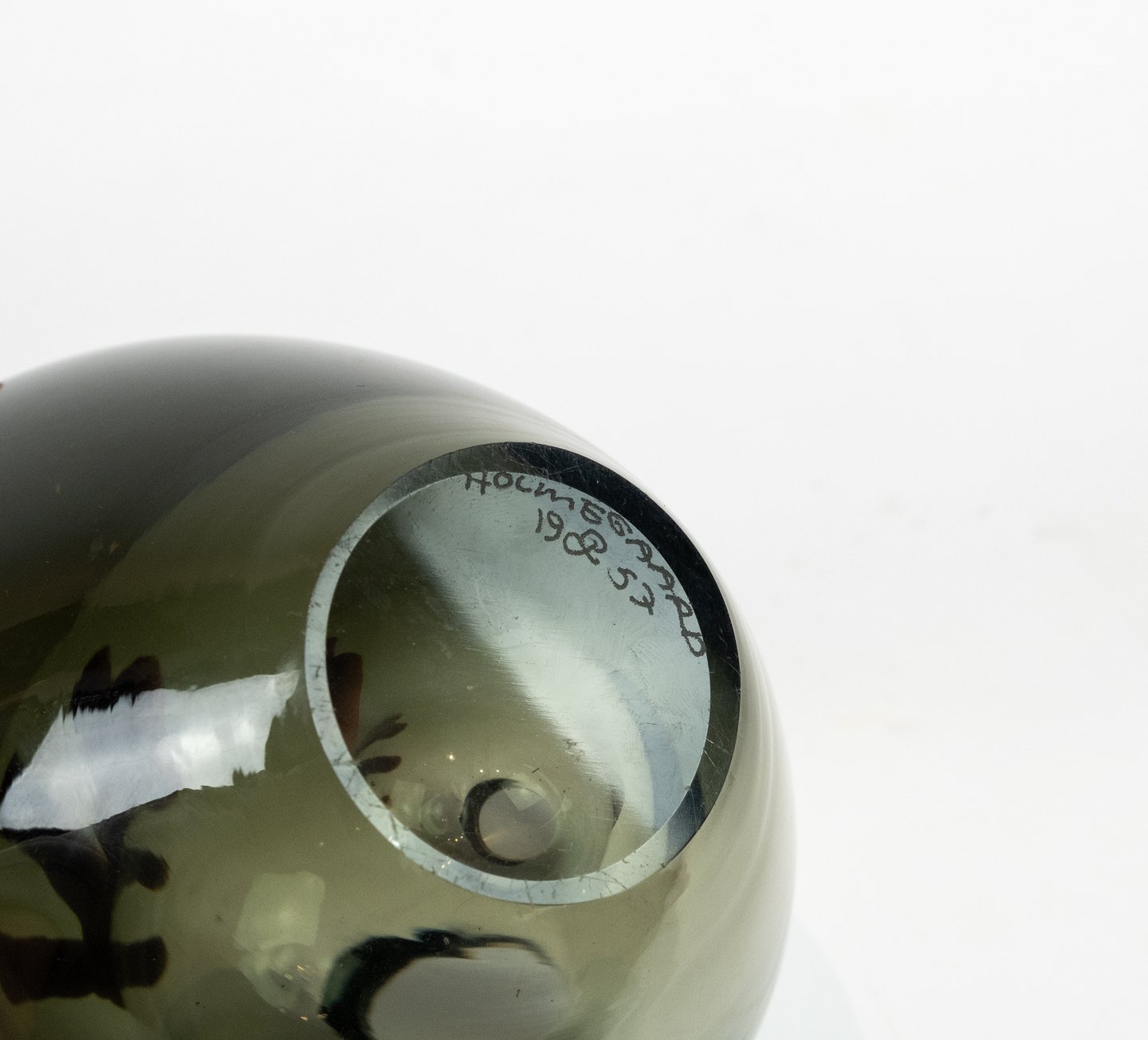 Mørkegrøn glas vase, model Globus, af Per Lütken for Holmegaard.