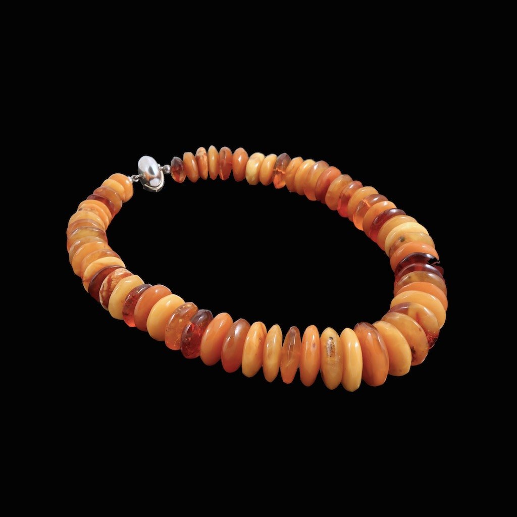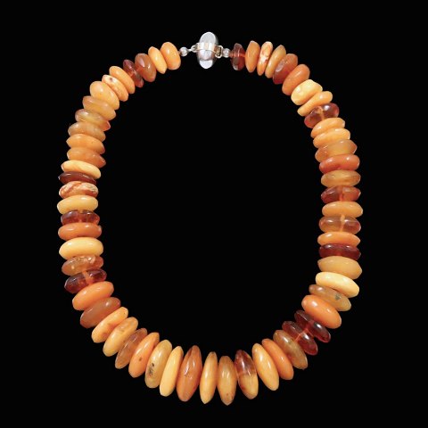 Kirsten Pontoppidan. Ravhalskæde med lås i sterlingsølv og 14k guld.