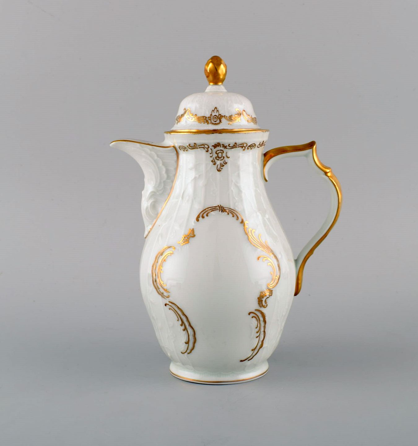 Rosenthal, Tyskland. Kaffeservice i porcelæn med gulddekoration til 12 personer med kaffekande og sukkerskål. 1900-tallet.