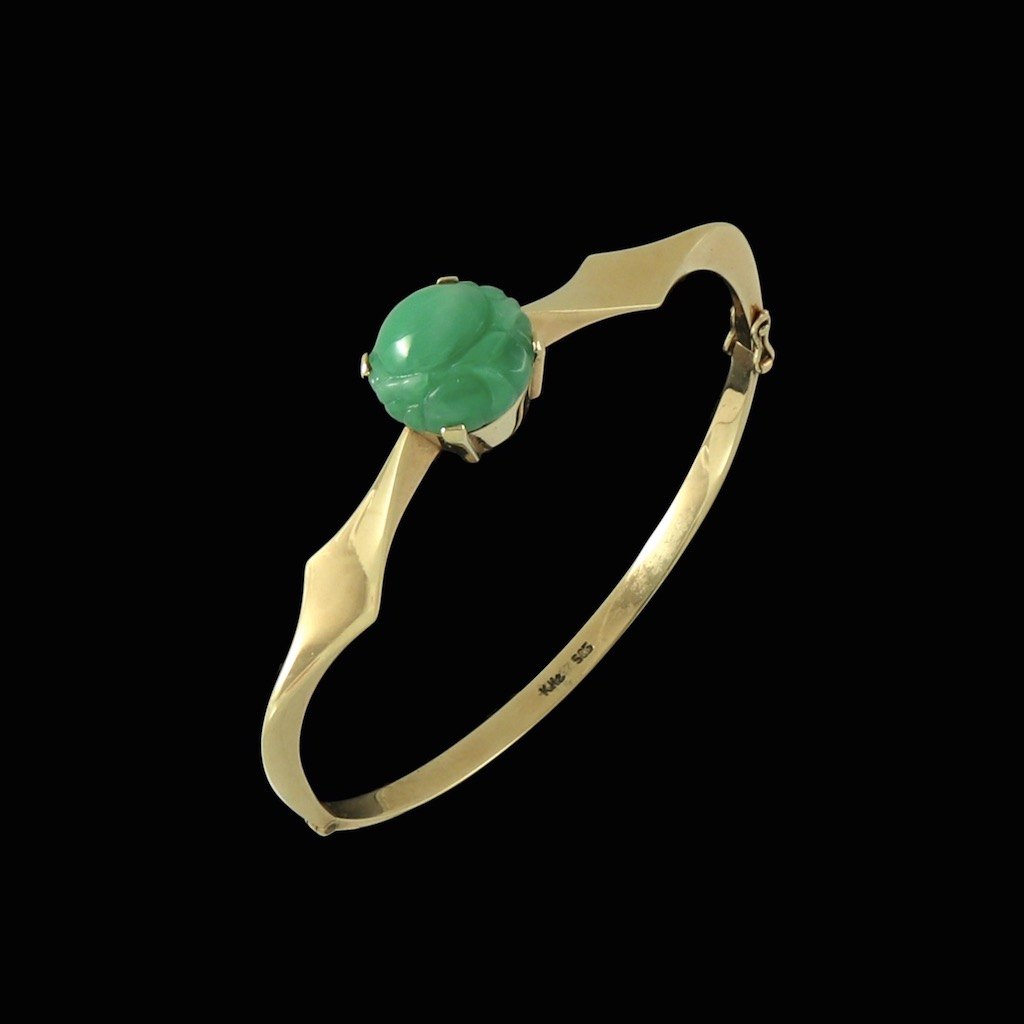 Knud Hejl - Denmark. 14k Gold Bangle with Jade.