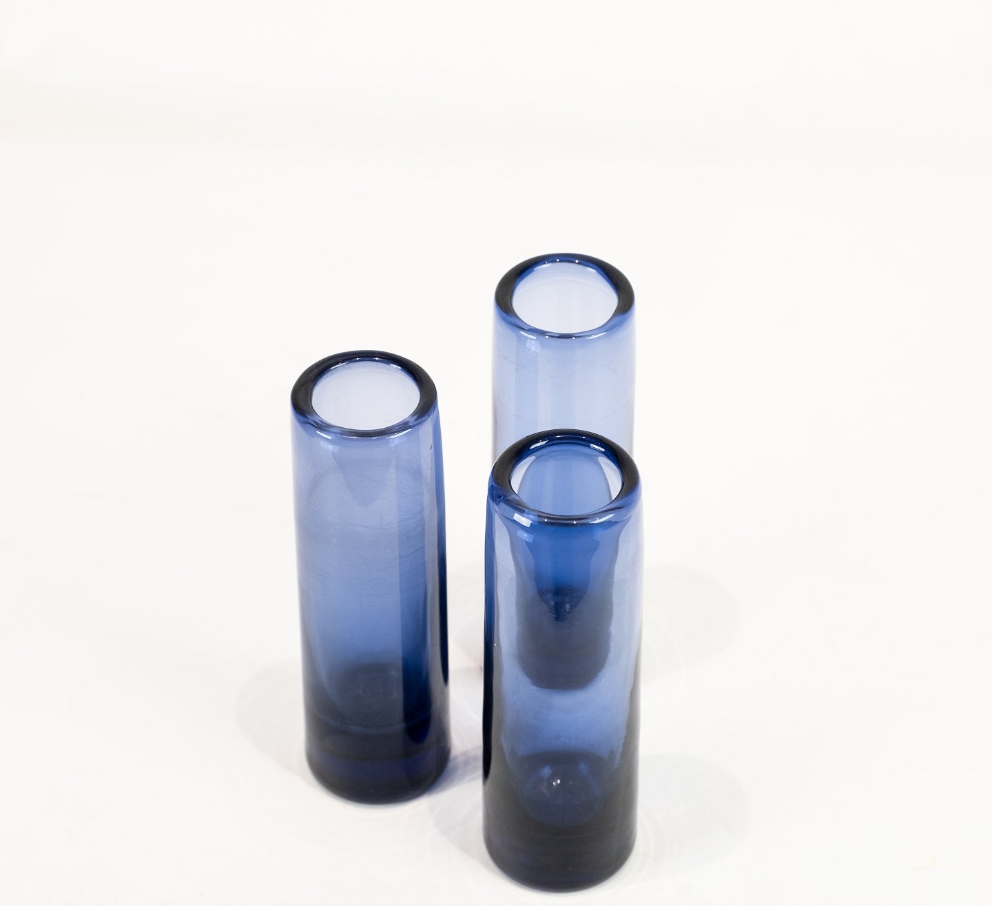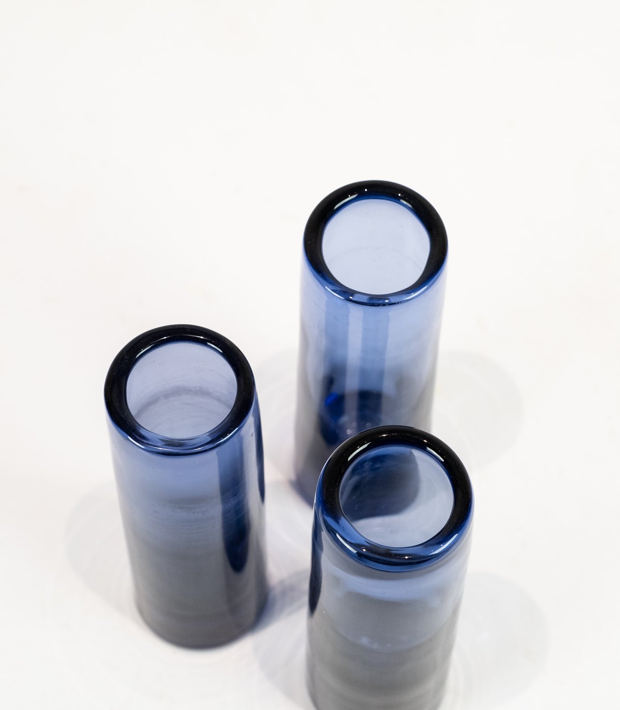 Sæt af tre mørkeblå glas vaser af Per Lütken for Holmegaard.