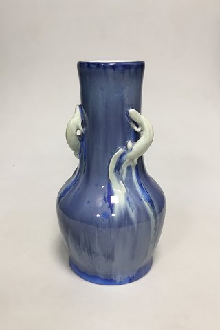 Royal Copenhagen Krystal Glasur vase af Valdemar Engelhardt med 3 Salamander no B533.