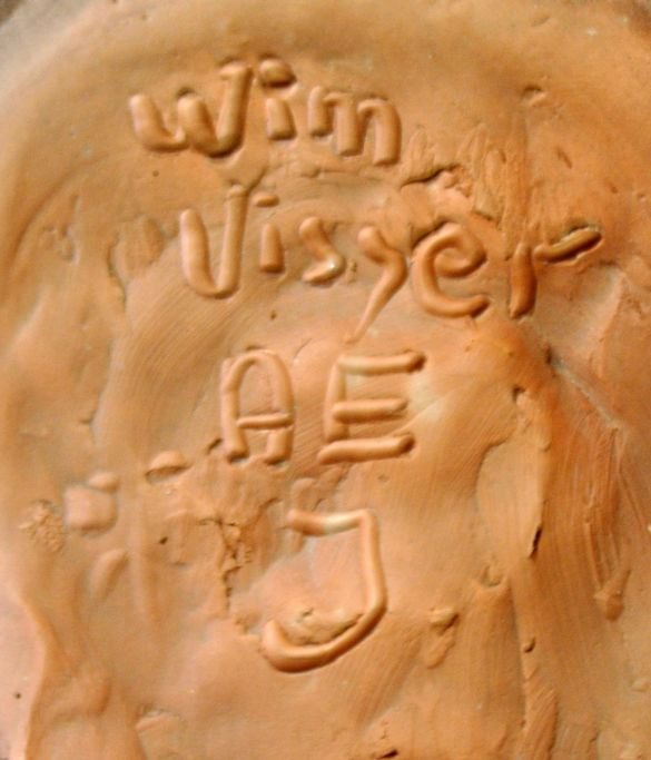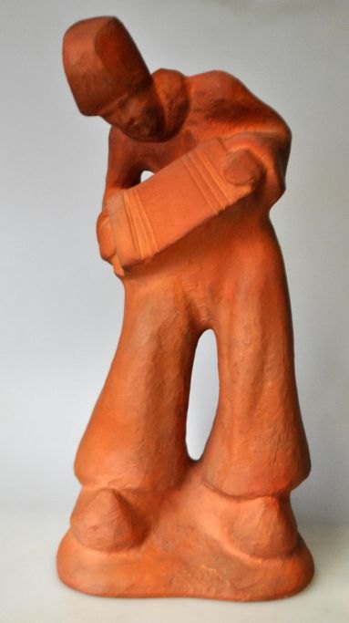 Ubekendt kunstner (20. årh. ): Harmonika spilleren Wim Visser. Art Deco. Rød lers figur. Signeret: A.E J. Højde.: 31 cm. Unika.