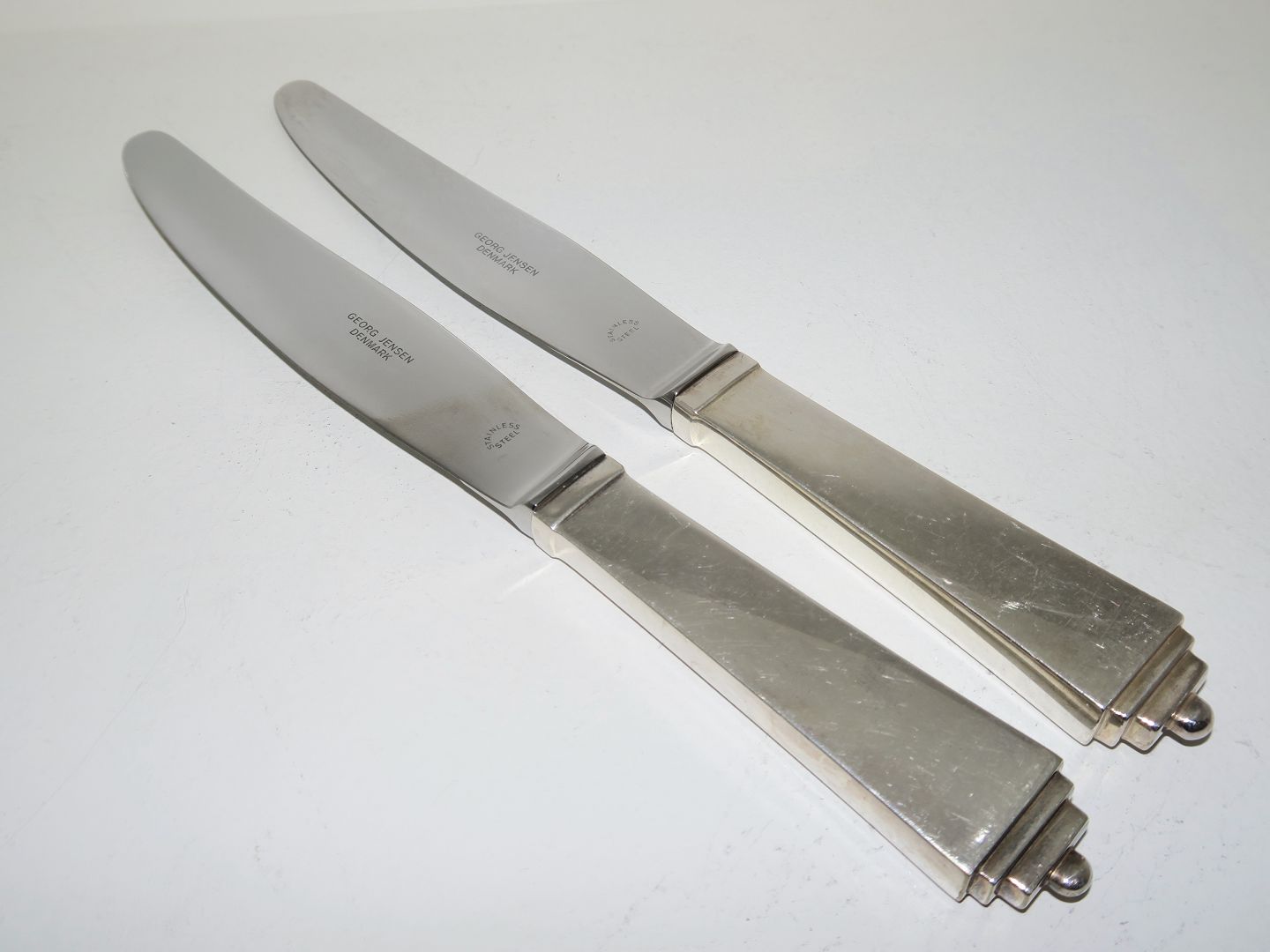 Georg Jensen Pyramide sølvplet bestik, middagskniv med langt blad.