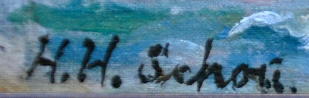 Schou, Hans Henrik (1884 - 1986) Danmark: Scene fra Øresund. Olie på lærred/træ. Signeret. 22,5 x 34 cm.