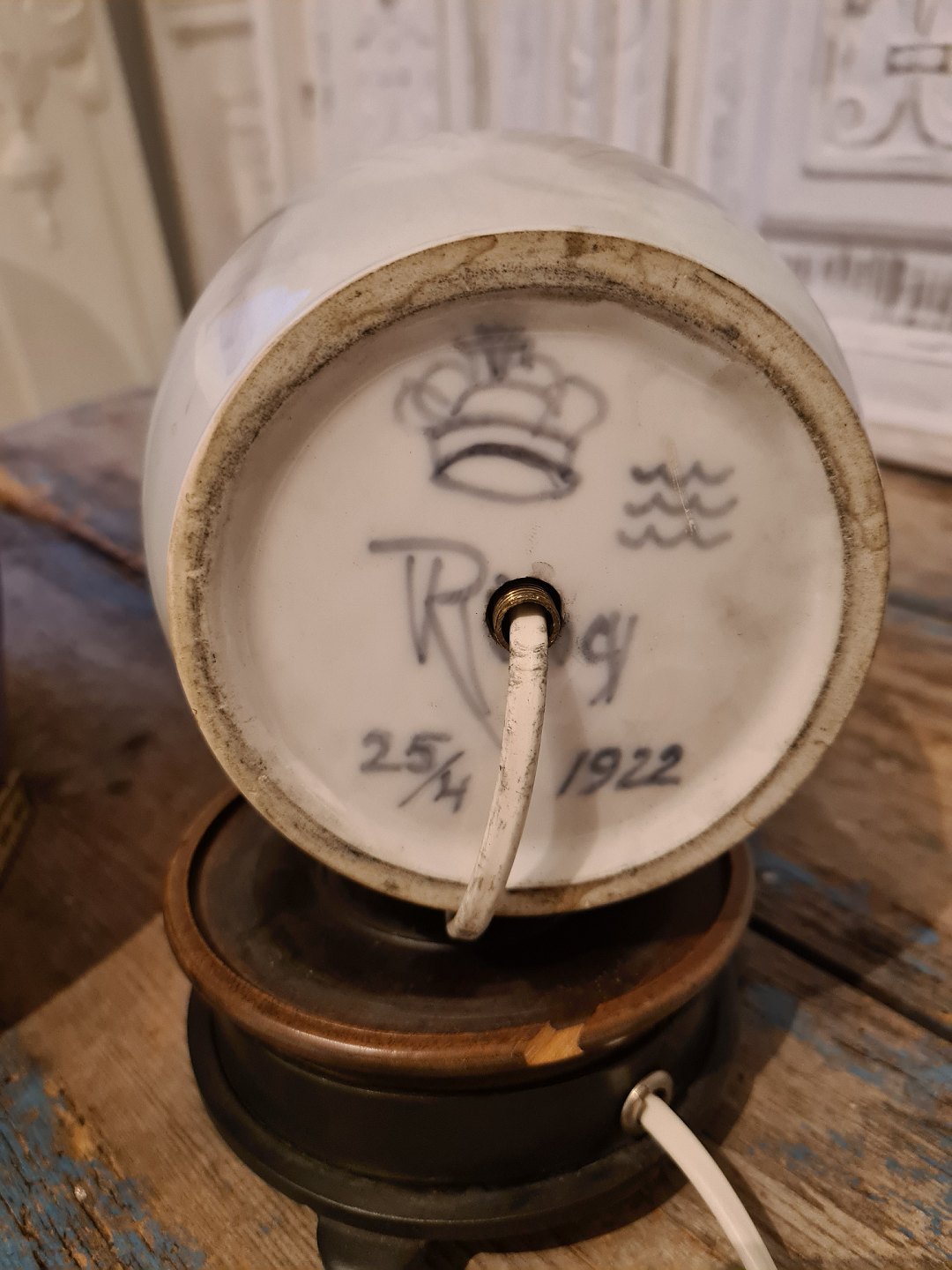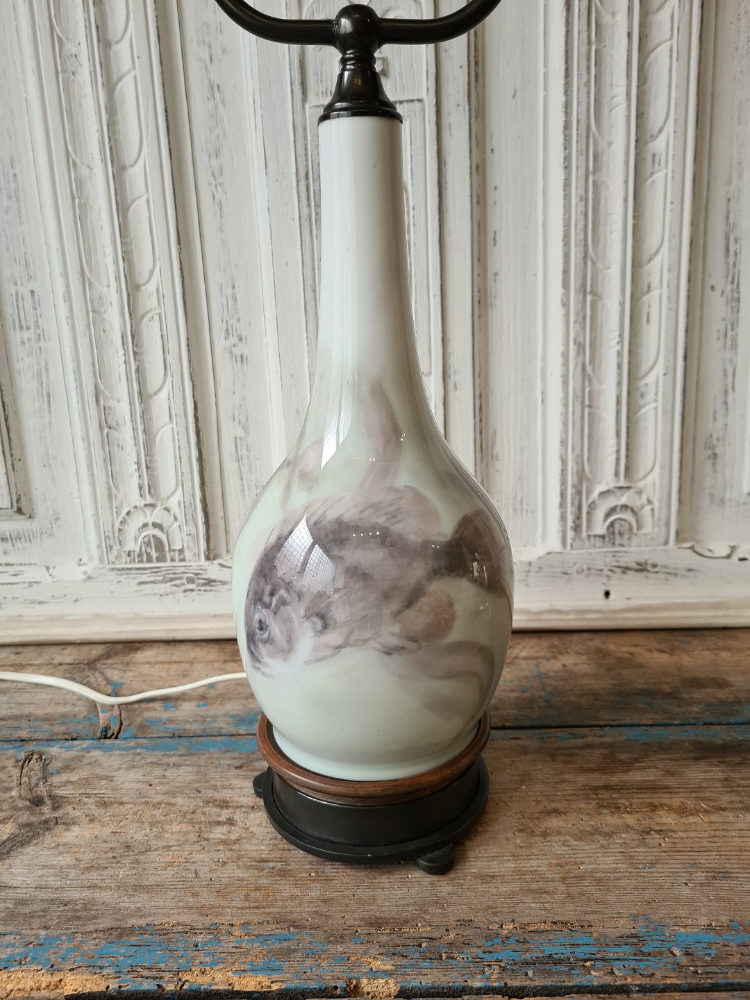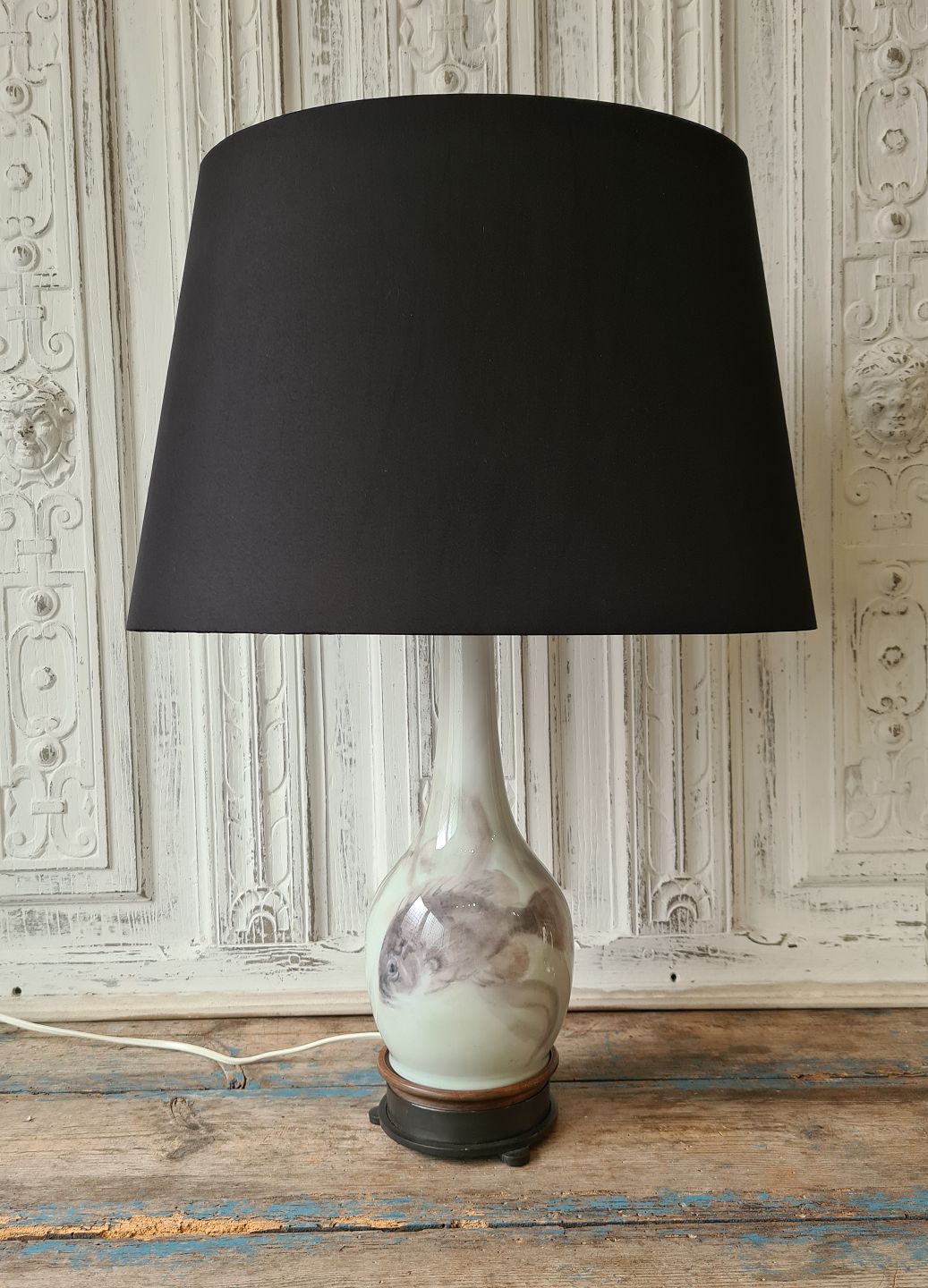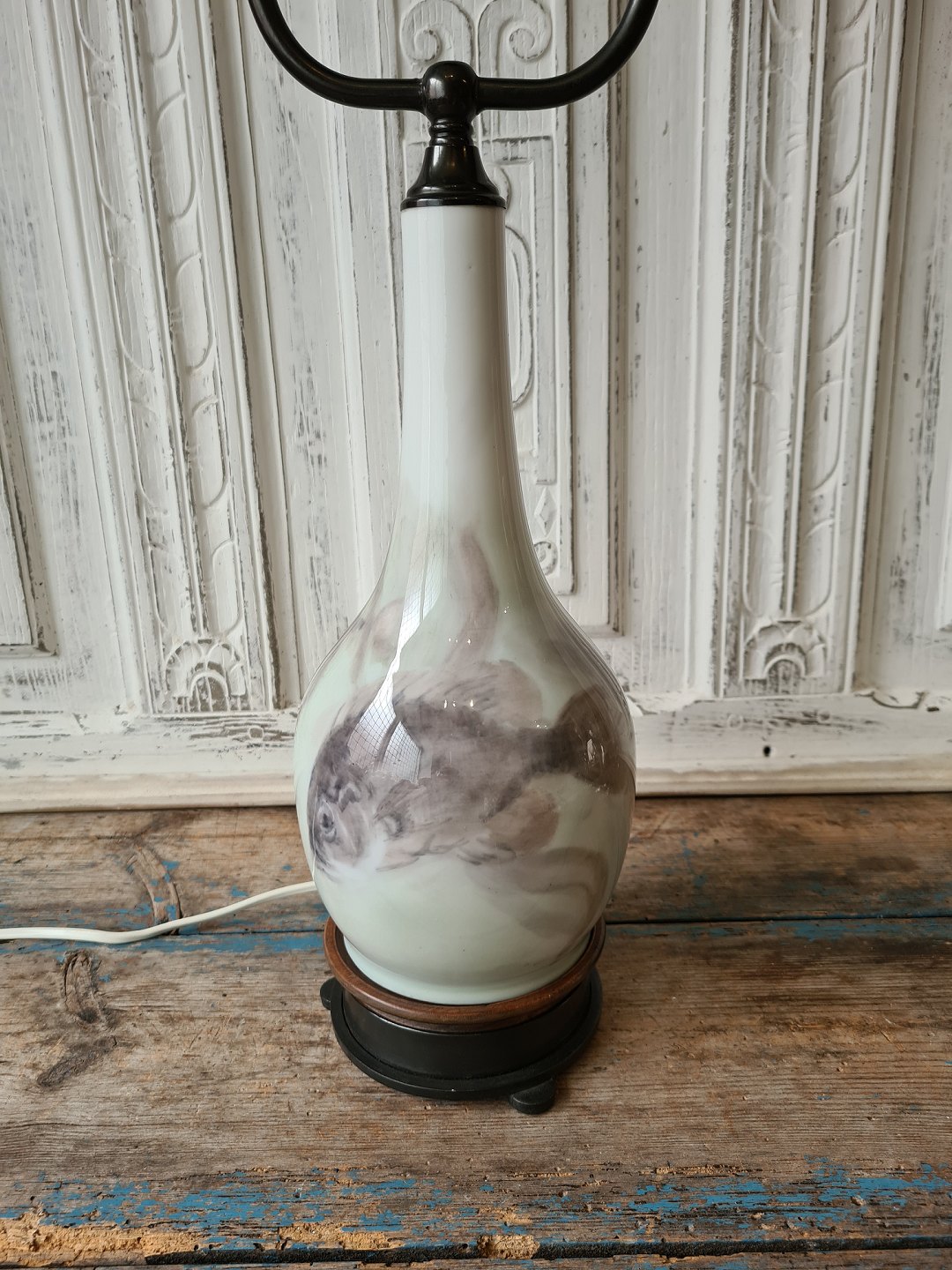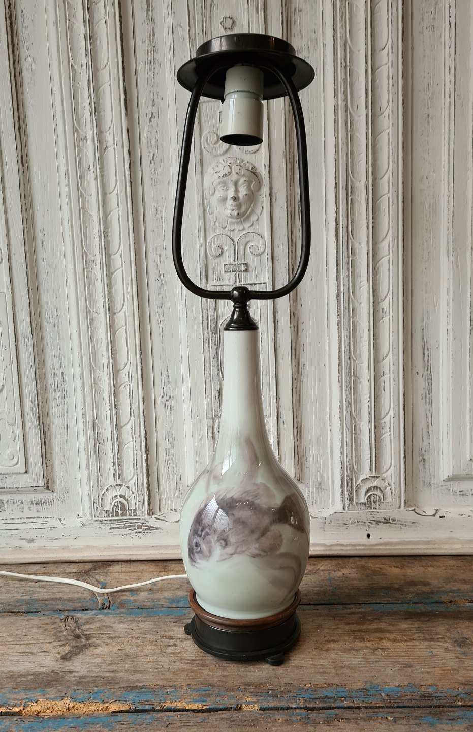 Svend Ring for Royal Copenhagen unika bordlampe dekoreret med fisk fra 1922.