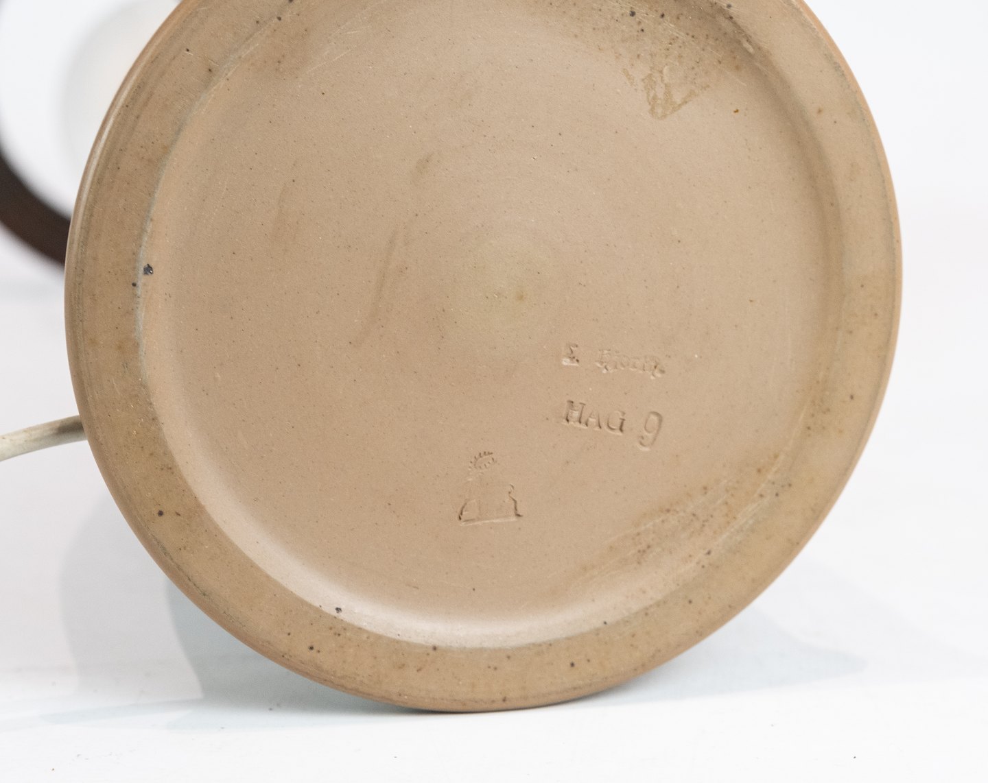 Tablelamp in brown colours, model MAG9, by Hjort Denmark. The shade is handfolded and handpainted of paper.