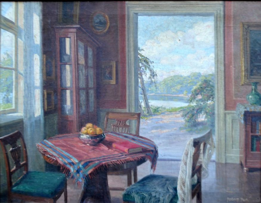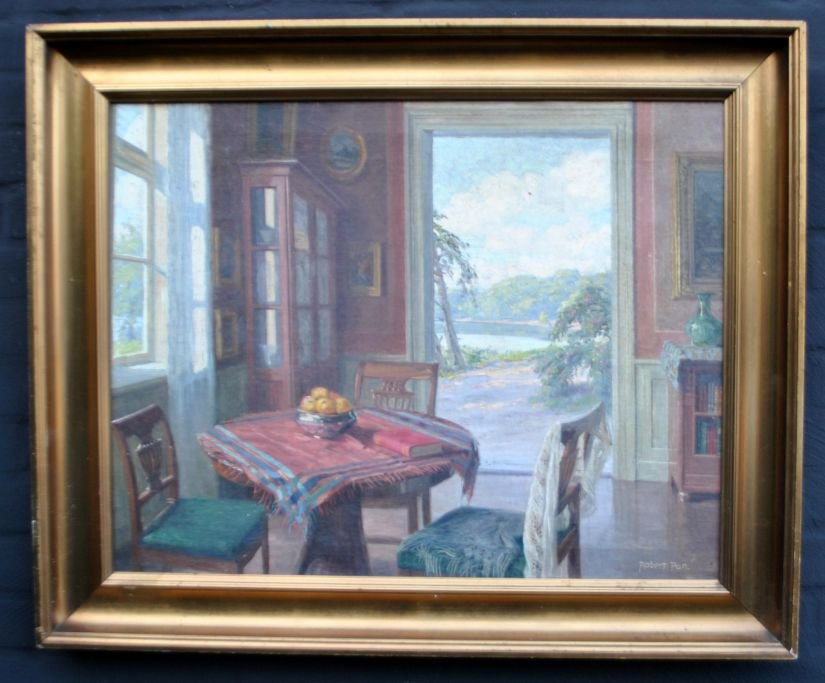 Panitzsch, Robert (1879 - 1949) Denmark: Interior from a sunny living room. Oil on canvas. Signed: Pobert Pan. 56 x 70 cm.