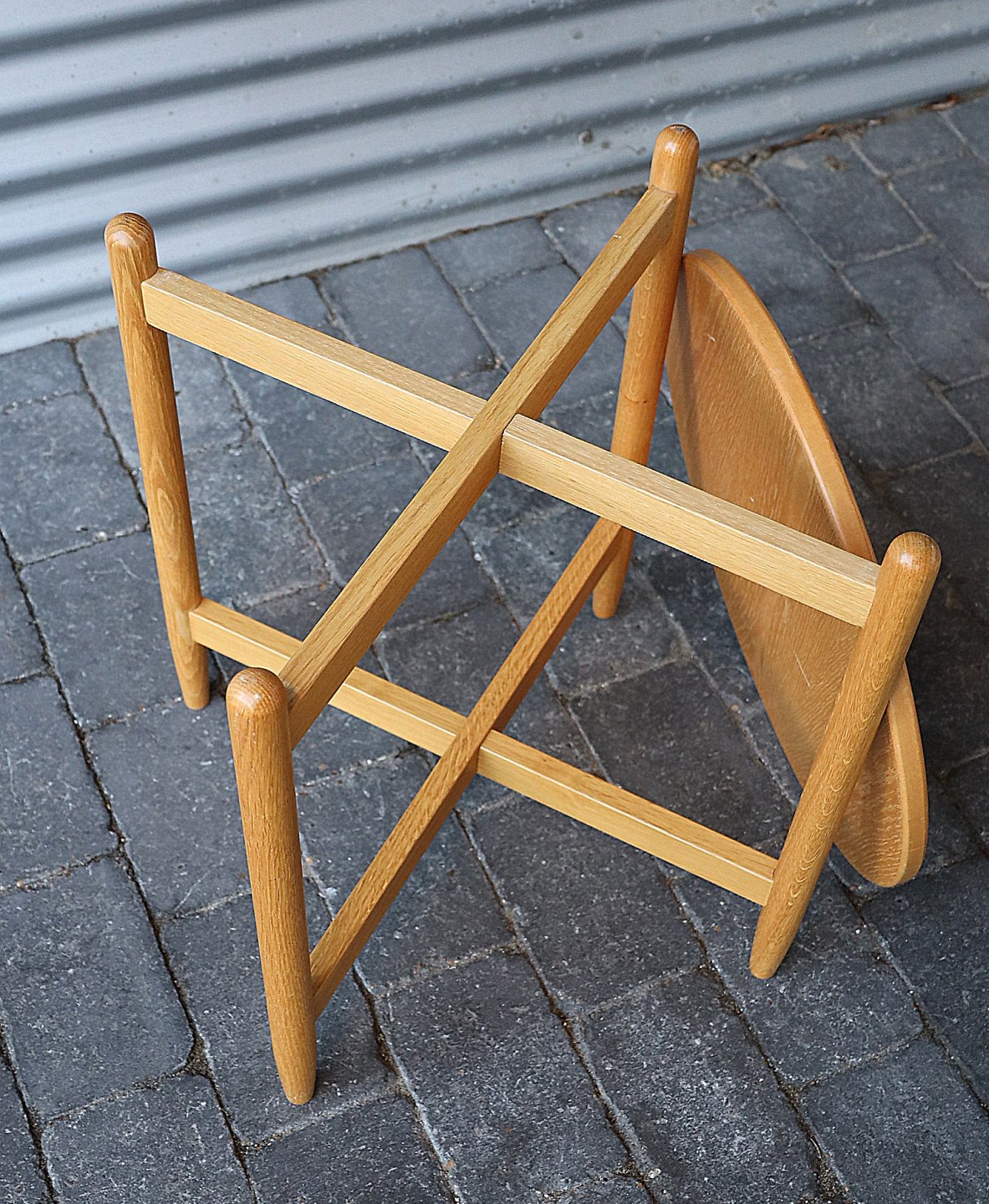 Egetræs bakkebord med 1 bakke. Der er 2 kryds på bordet, bordet kan ikke slås sammen. Bakken er uden kanter