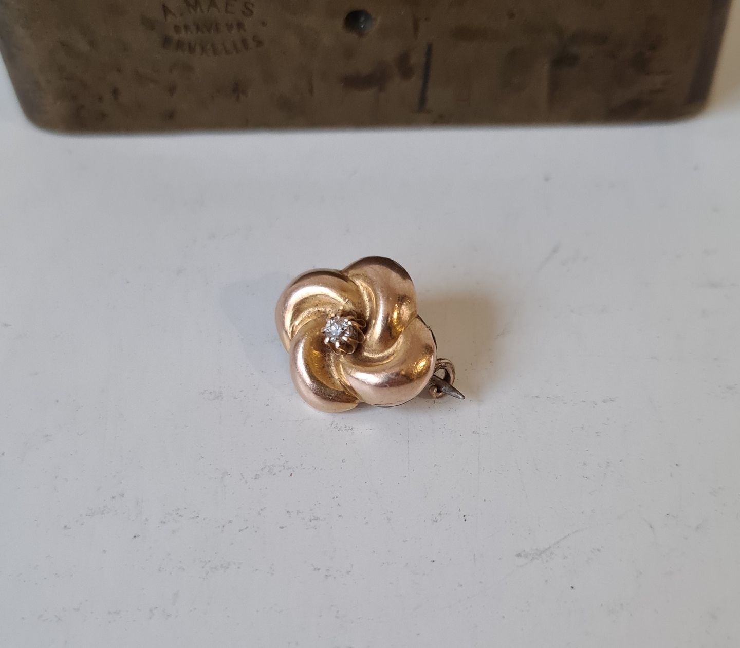 Smuk gammel 14 kt guld broche med old mine cut diamant.