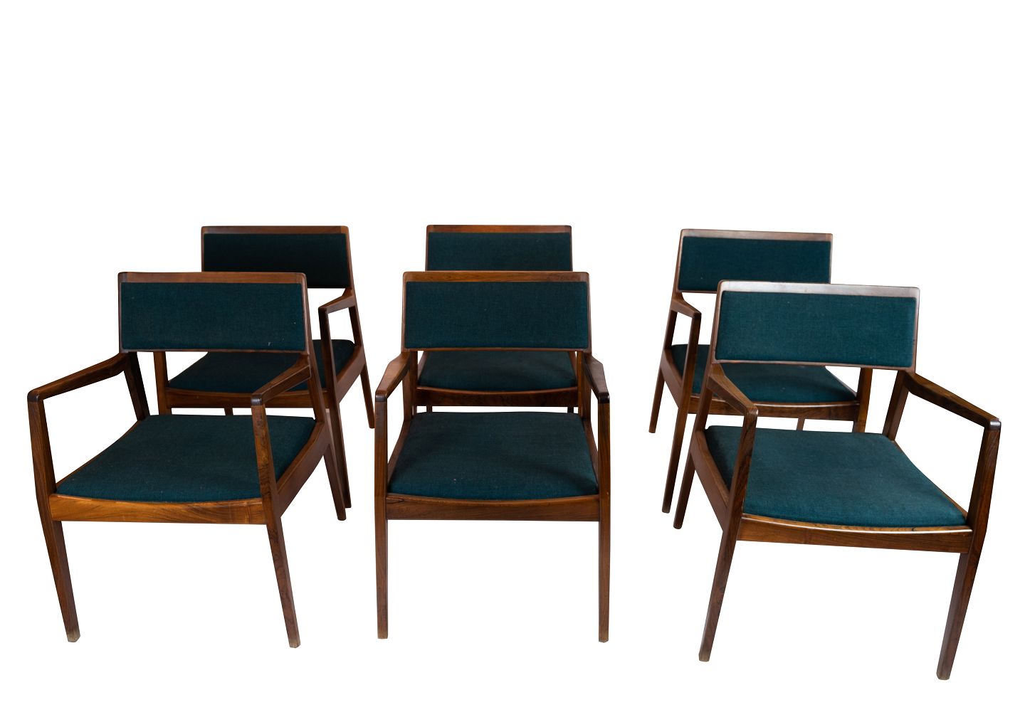 Et sæt af seks lænestole i "Playboy" design, også kendt som Model C140, fremstillet af palisandertræ og designet af den anerkendte Jens Risom.