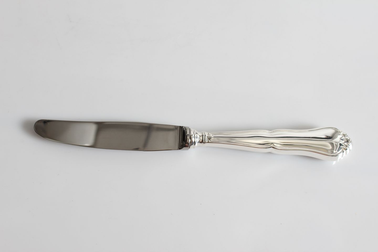 Fabriksnye middagsknive fremstillet af tretårnet sølv