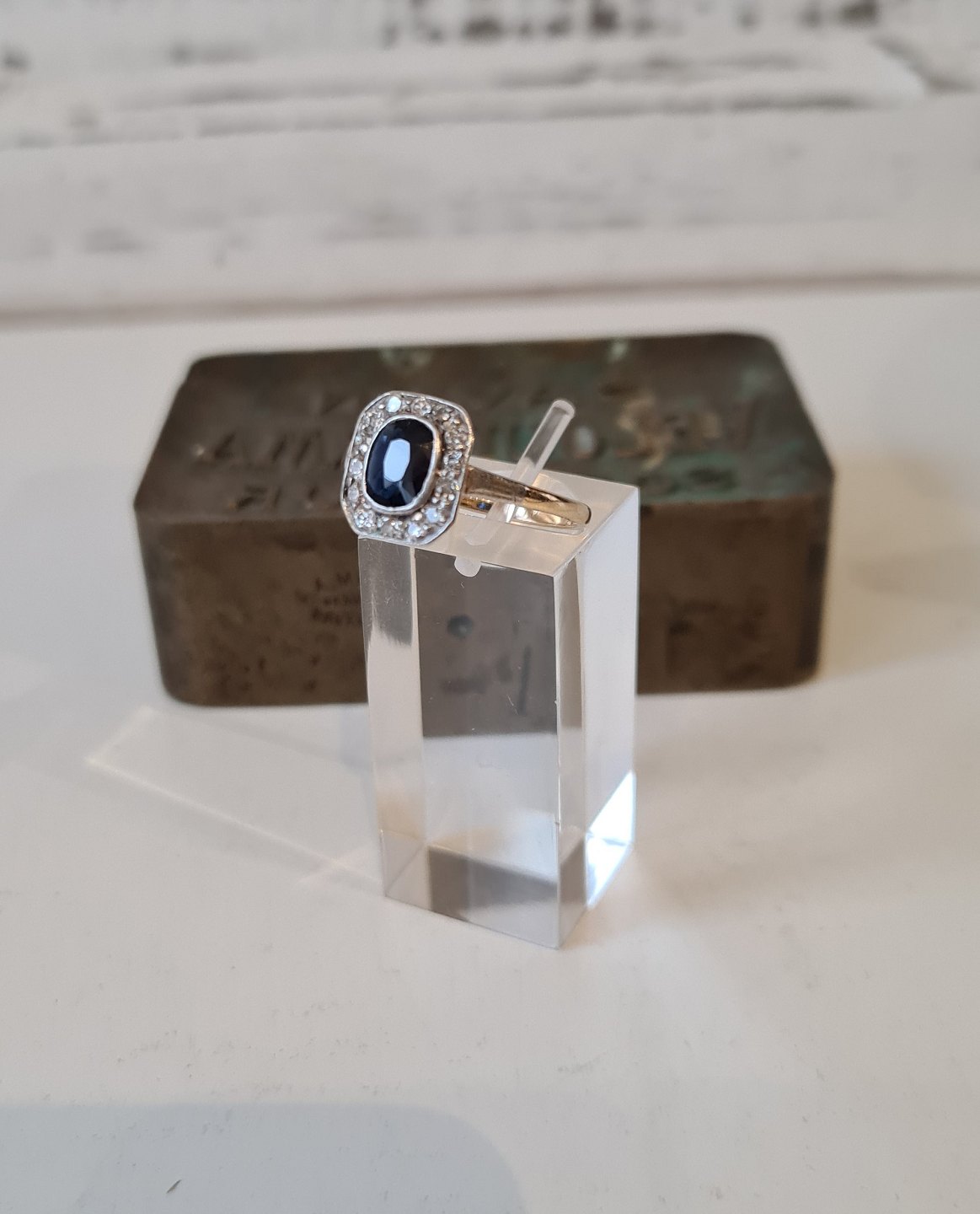 Vintage safir og diamant ring i 18 kt guld