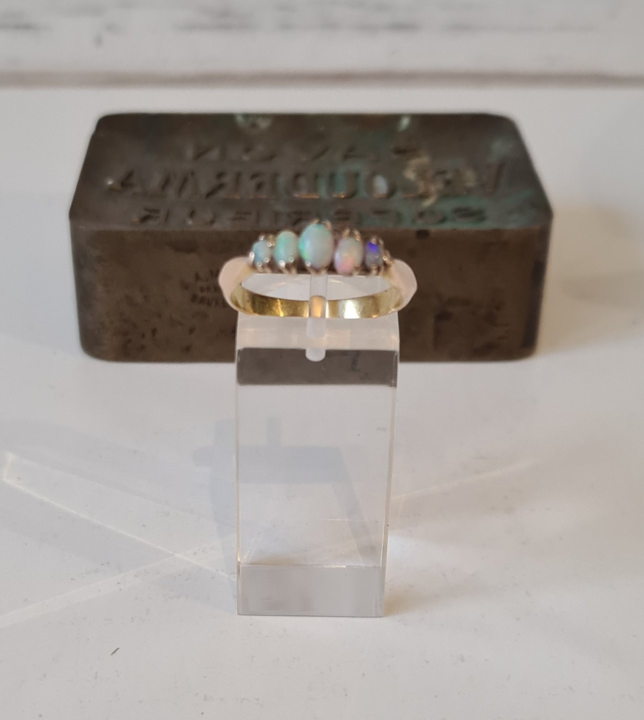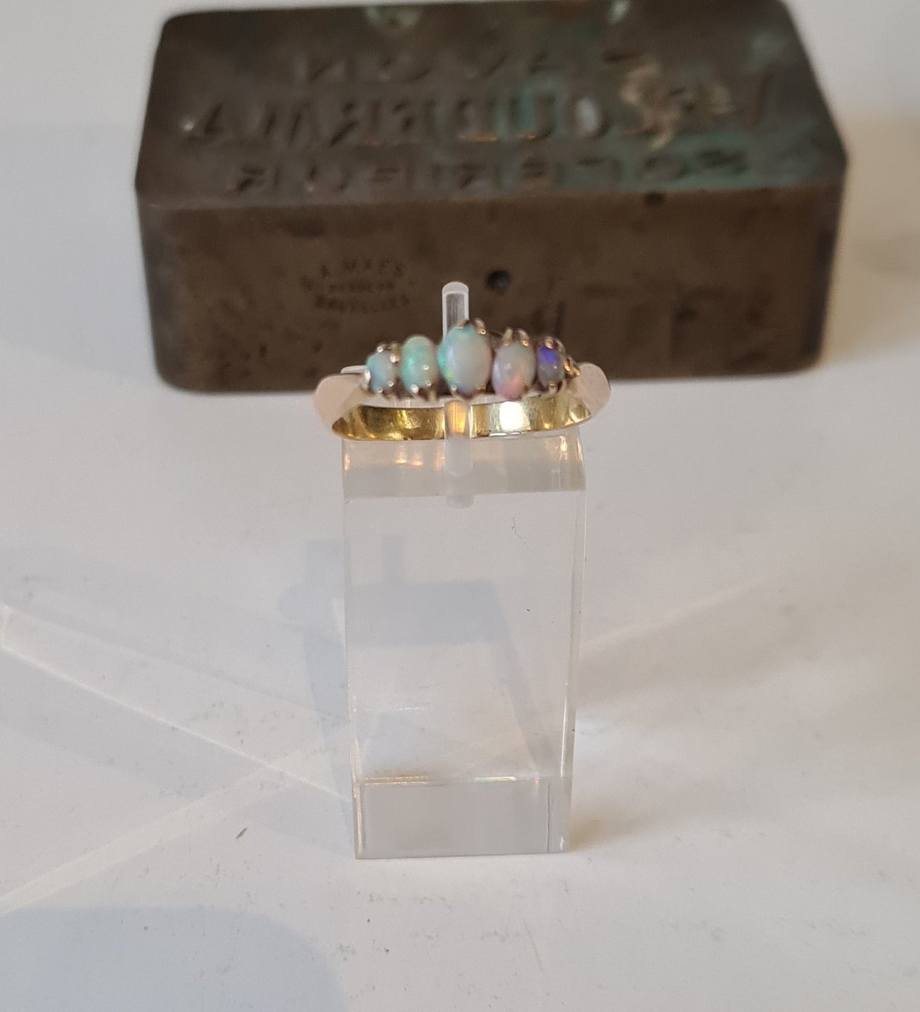 Vintage ring i 14 kt guld med 5 smukke opaler