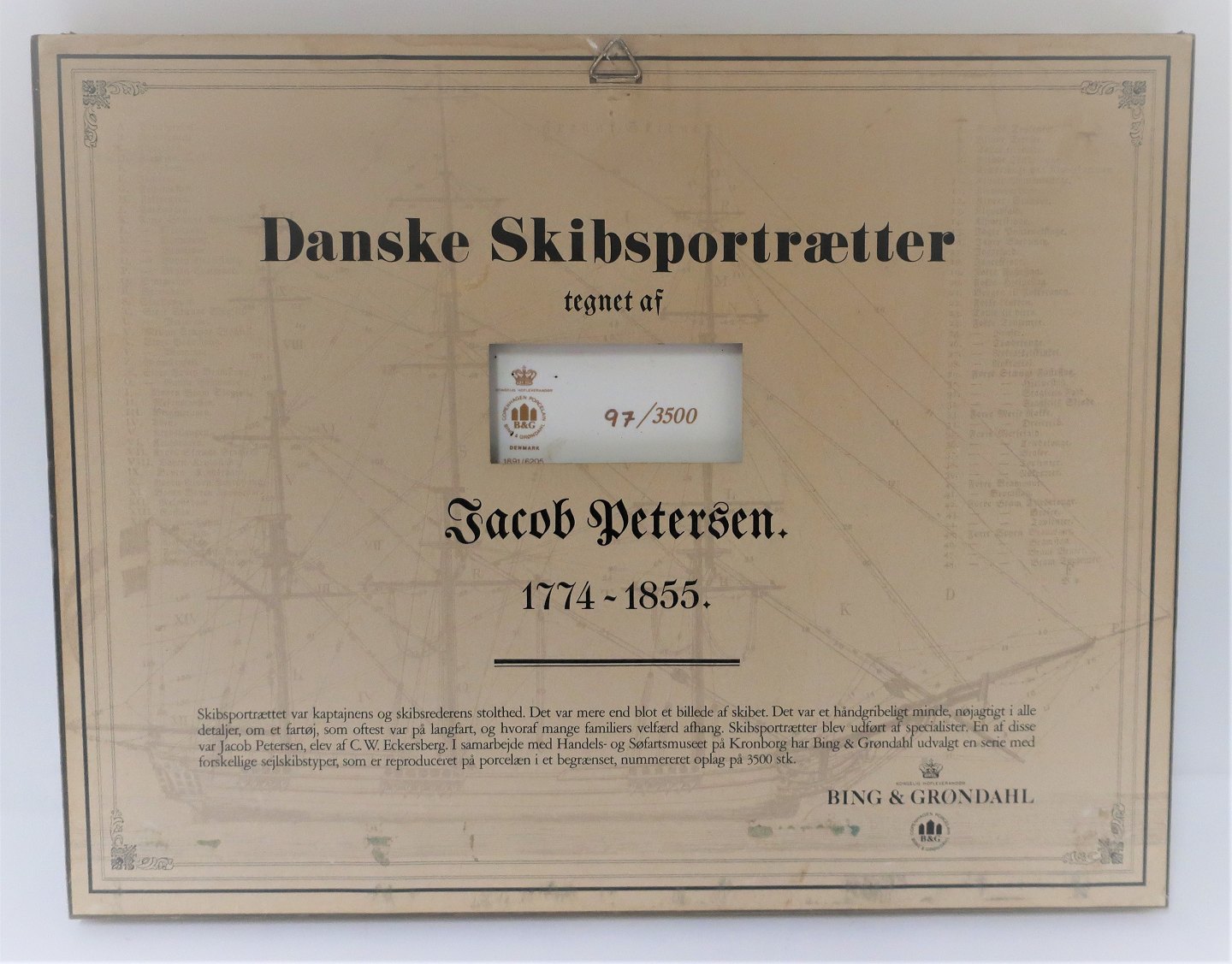 Bing & Grøndahl. Porcelæn. Danske skibsportrætter. Billed af Fregatten "Frederick den Siette". Mål : Bredde 38* 30 cm. Der er produceret 3500, og denne er no. 97.