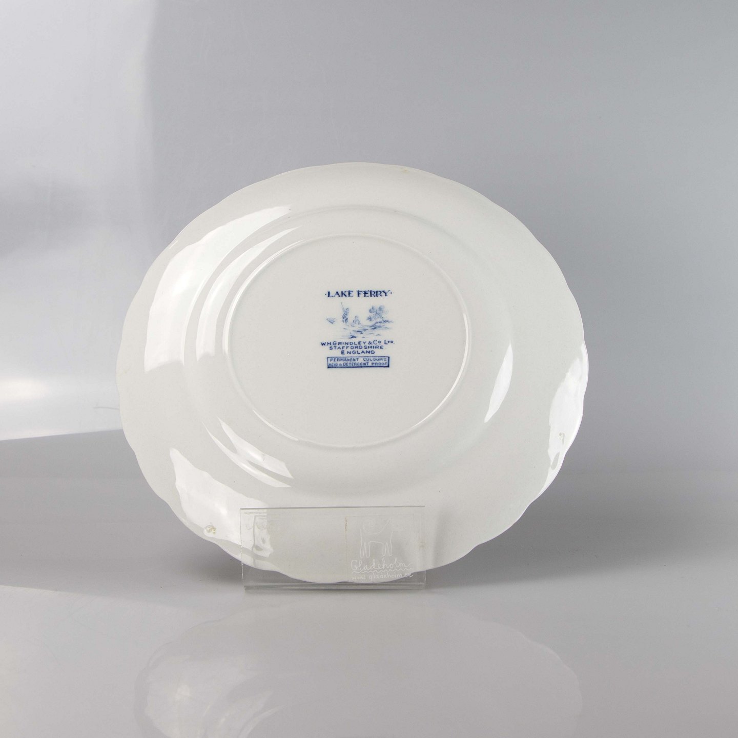 Flad tallerken i engelsk fajance fra stellet Lake Ferry