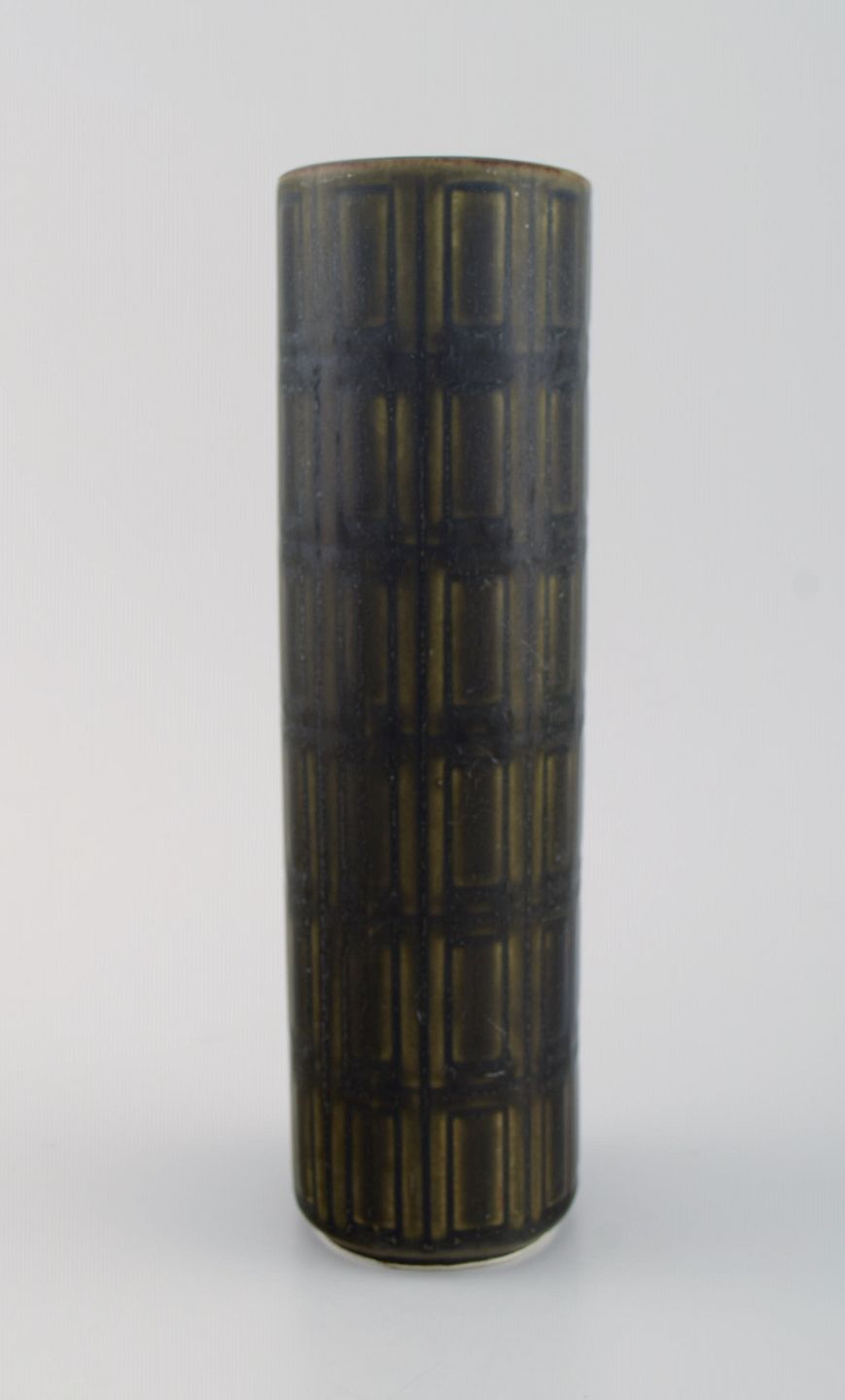 Arabia, finland. Vase i glaseret i keramik. Smuk glasur i mørkegrønne nuancer. 1960'erne.