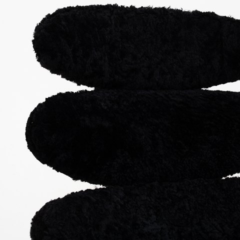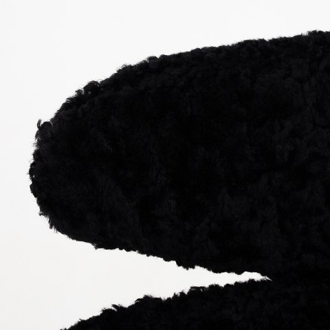 EJ 5 - 'Corona' lænestol med tilhørende skammel i stål og nybetrukket i sort lammeuld.