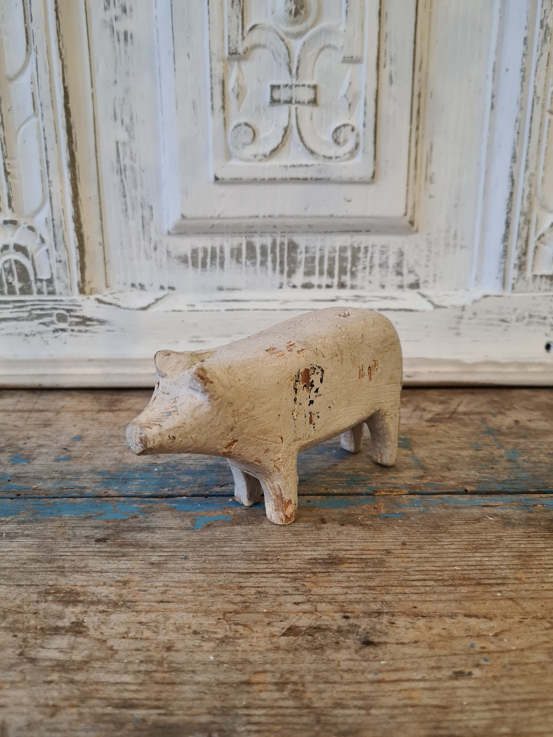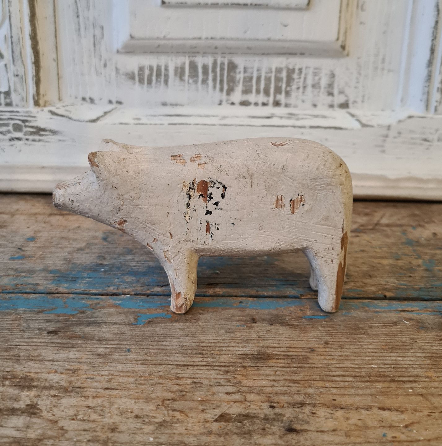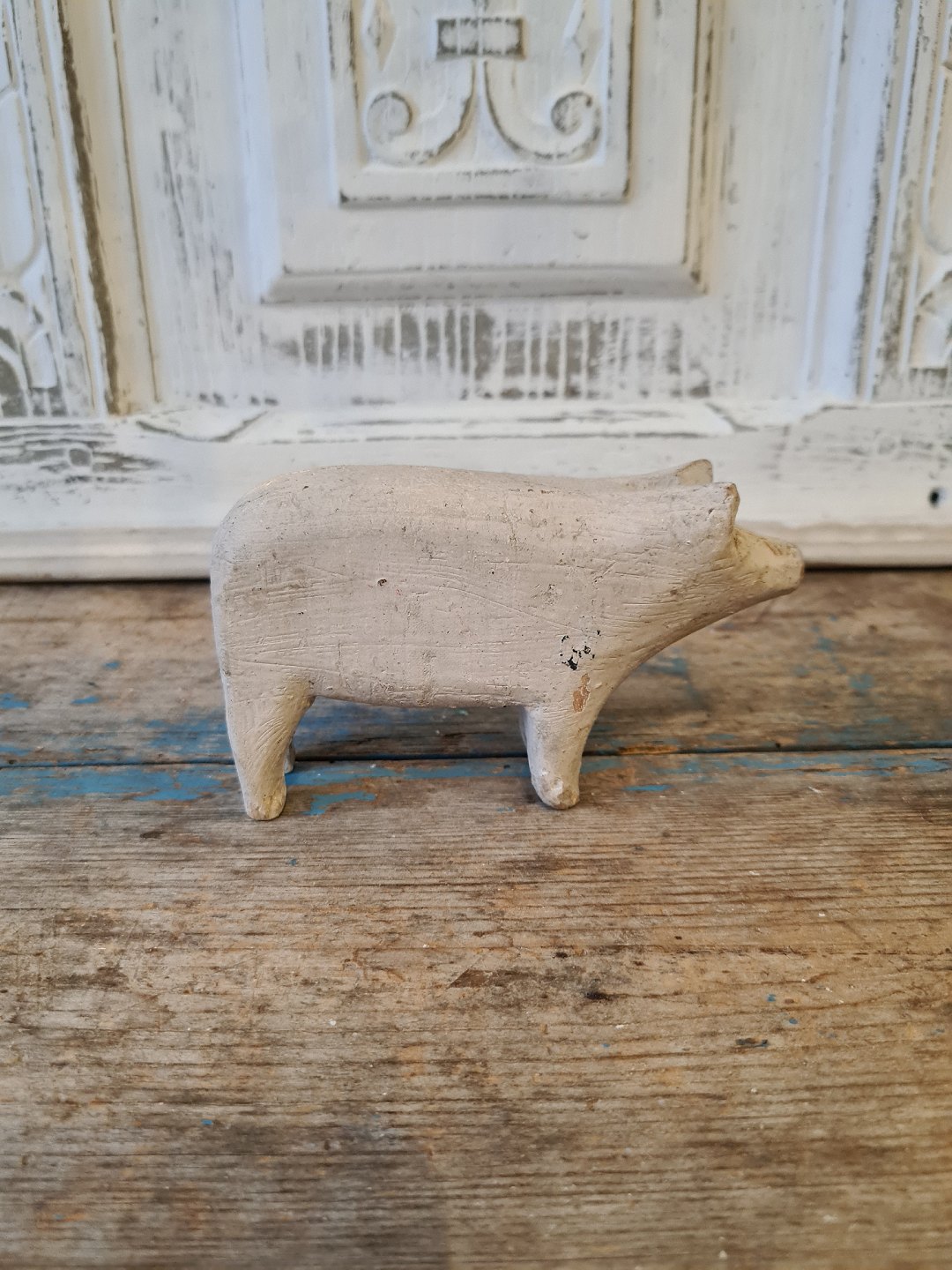 Gammel fængsels legetøj i form af gråmalet gris