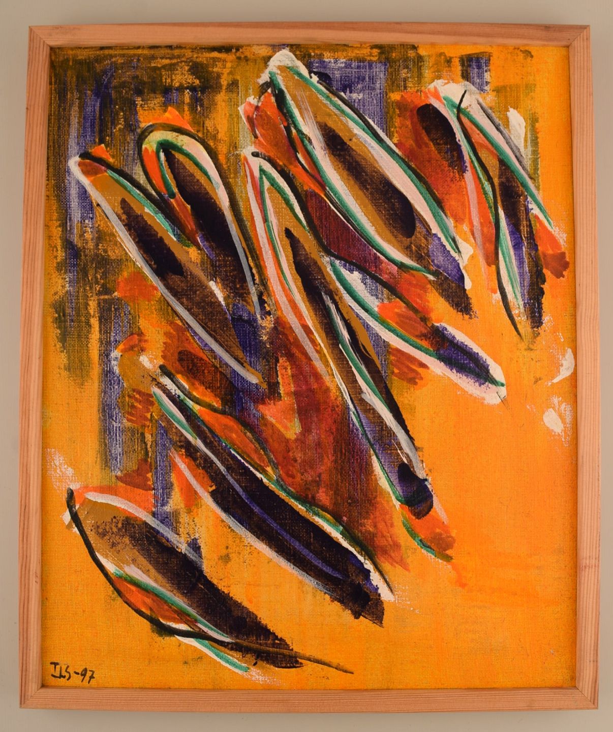 Ivy Lysdal, f 1937. Dansk keramiker og kunstmaler. Akryl på lærred. Abstrakt modernistisk maleri. Koloristisk palette. Dateret 1997.