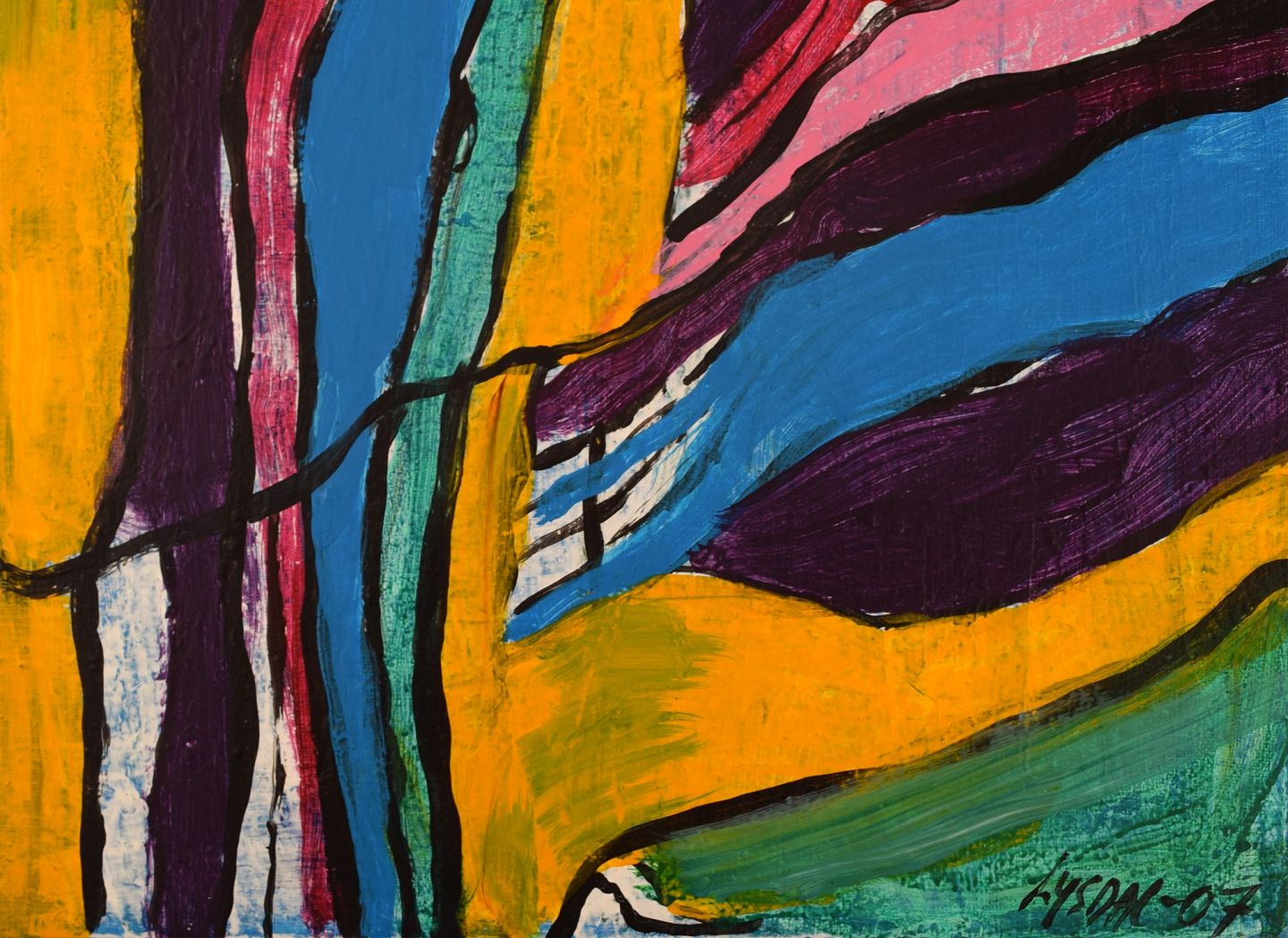Ivy Lysdal, f 1937. Dansk keramiker og kunstmaler. Akryl på lærred. Abstrakt modernistisk maleri. Koloristisk palette. Dateret 2007.