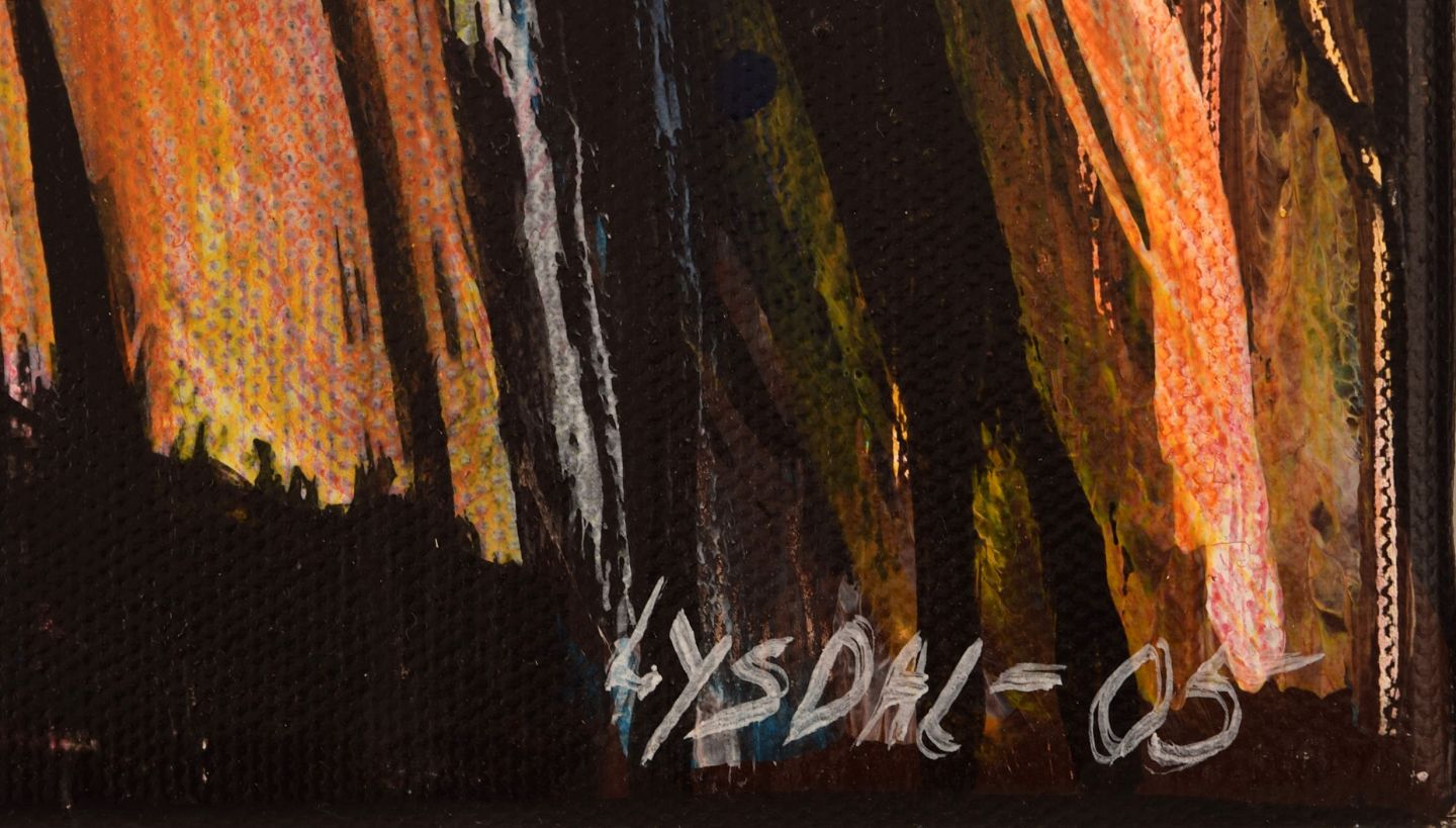 Ivy Lysdal, f 1937. Dansk keramiker og kunstmaler. Akryl på lærred. Abstrakt modernistisk maleri. Koloristisk palette. Dateret 2005.