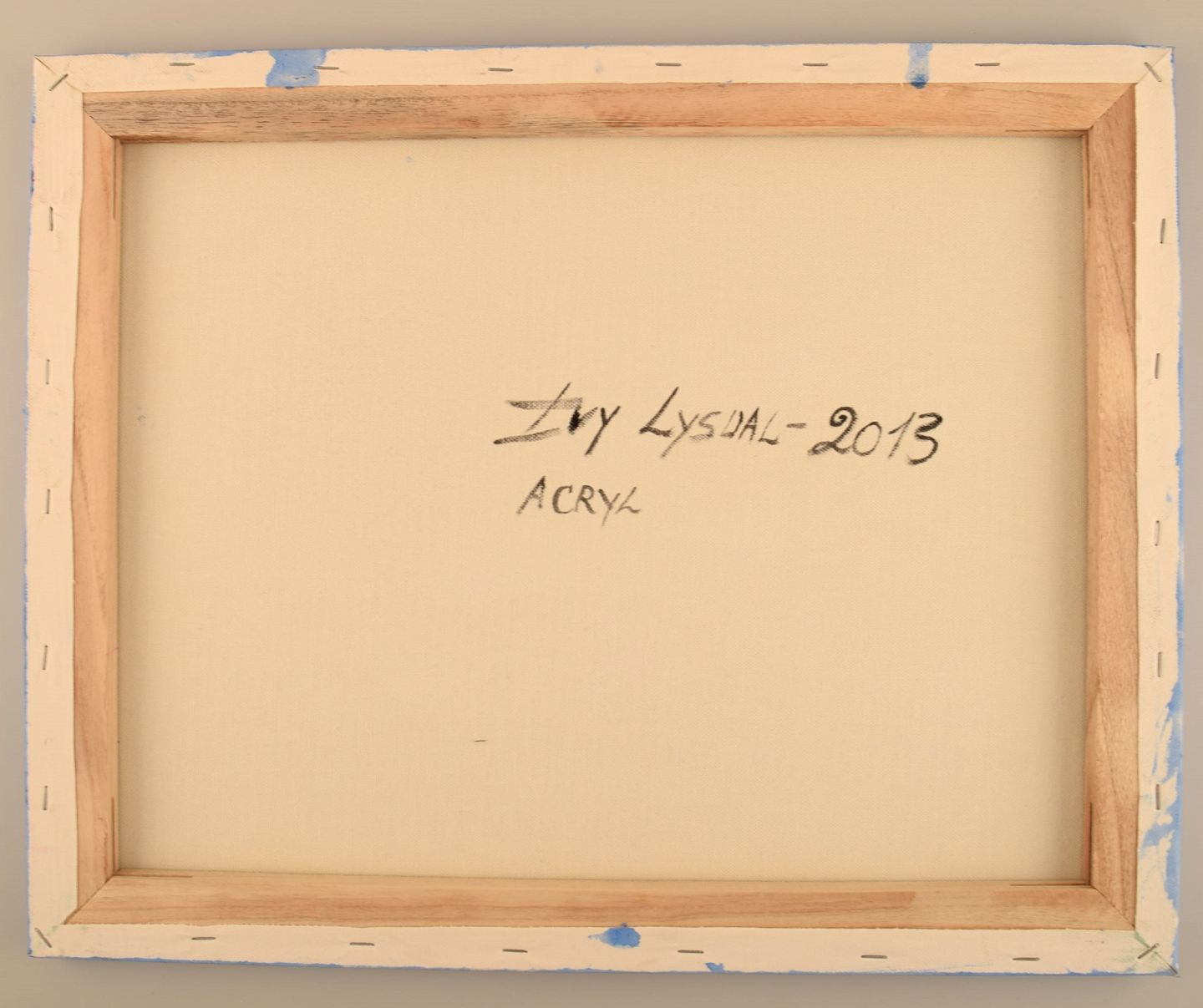 Ivy Lysdal, f 1937. Dansk keramiker og kunstmaler. Akryl på lærred. Abstrakt modernistisk maleri. Koloristisk palette. Dateret 2013.