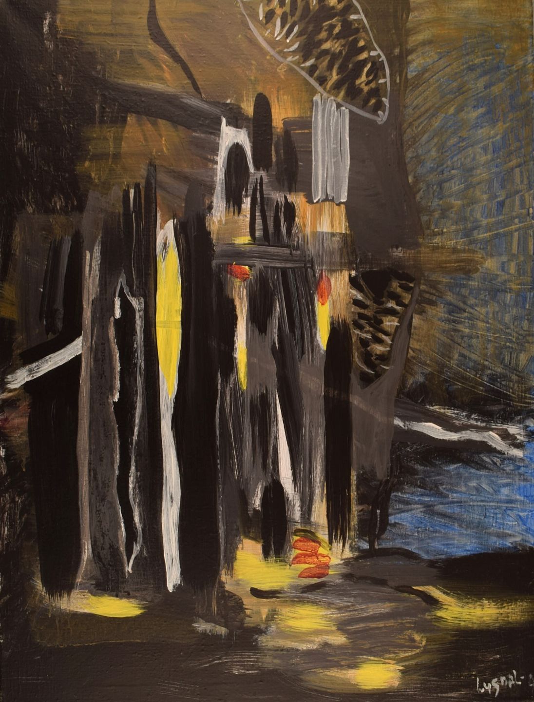 Ivy Lysdal, f 1937. Dansk keramiker og kunstmaler. Akryl på lærred. Abstrakt modernistisk maleri. Koloristisk palette. Sent 1900-tallet.