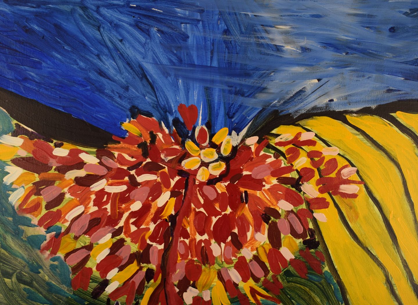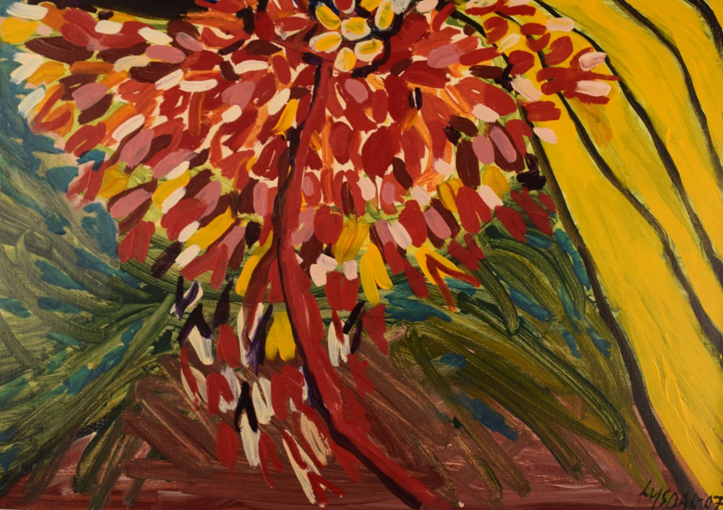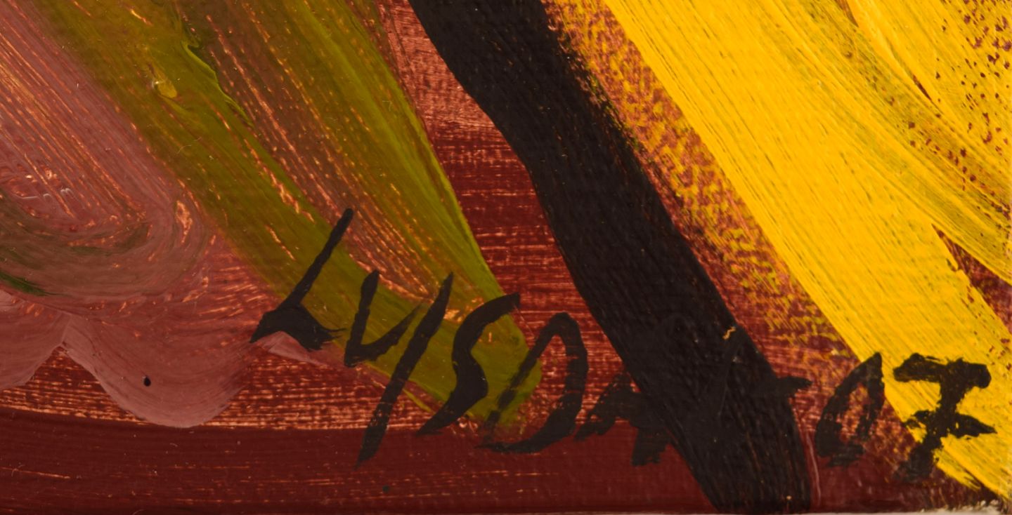 Ivy Lysdal, f 1937. Dansk keramiker og kunstmaler. Akryl på lærred. Abstrakt modernistisk maleri. Koloristisk palette. Dateret 2007.