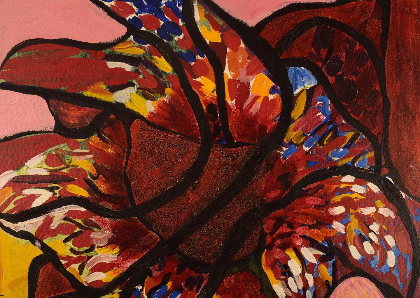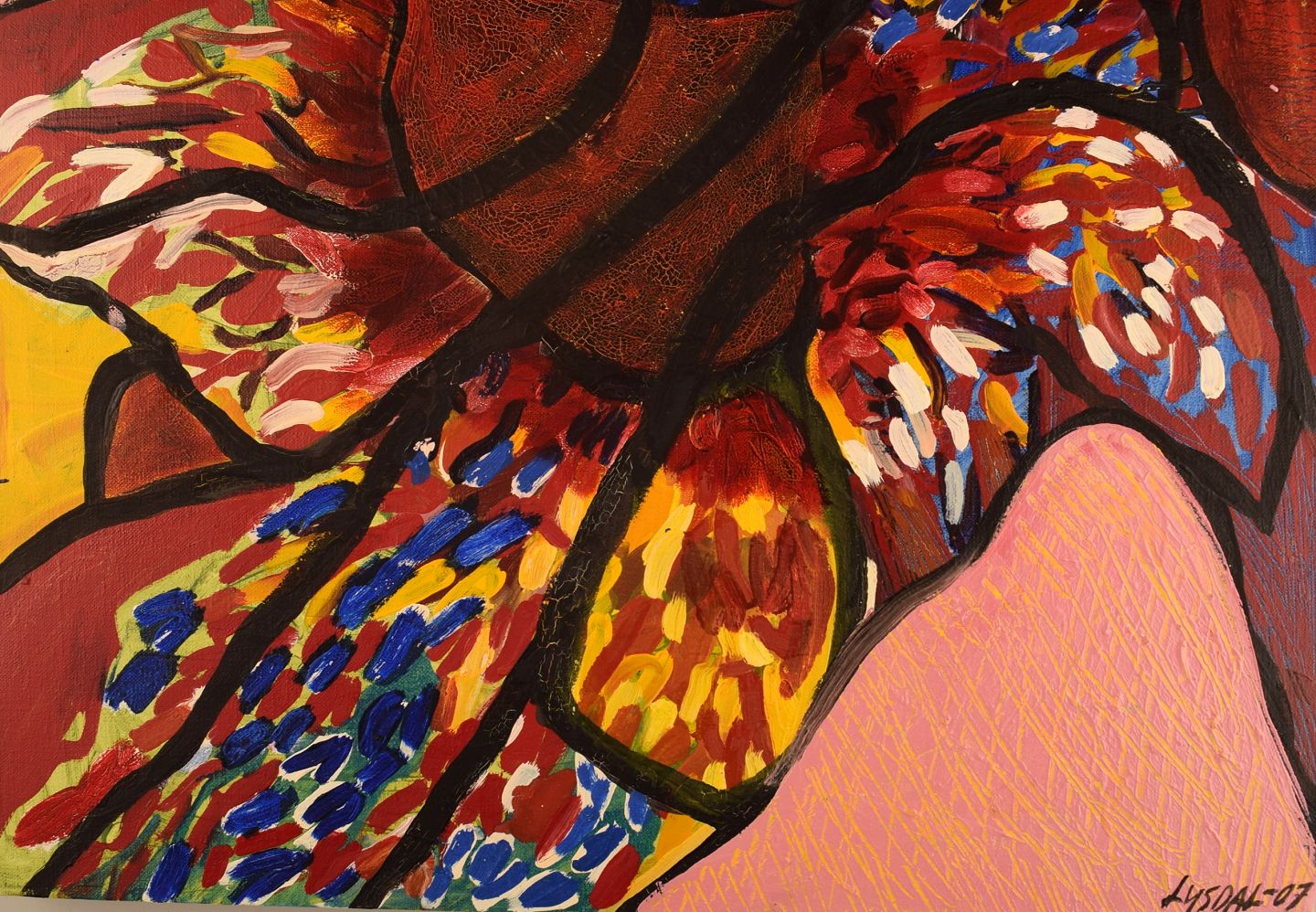 Ivy Lysdal, f 1937. Dansk keramiker og kunstmaler. Akryl på lærred. Abstrakt modernistisk maleri. Koloristisk palette. Dateret 2007.