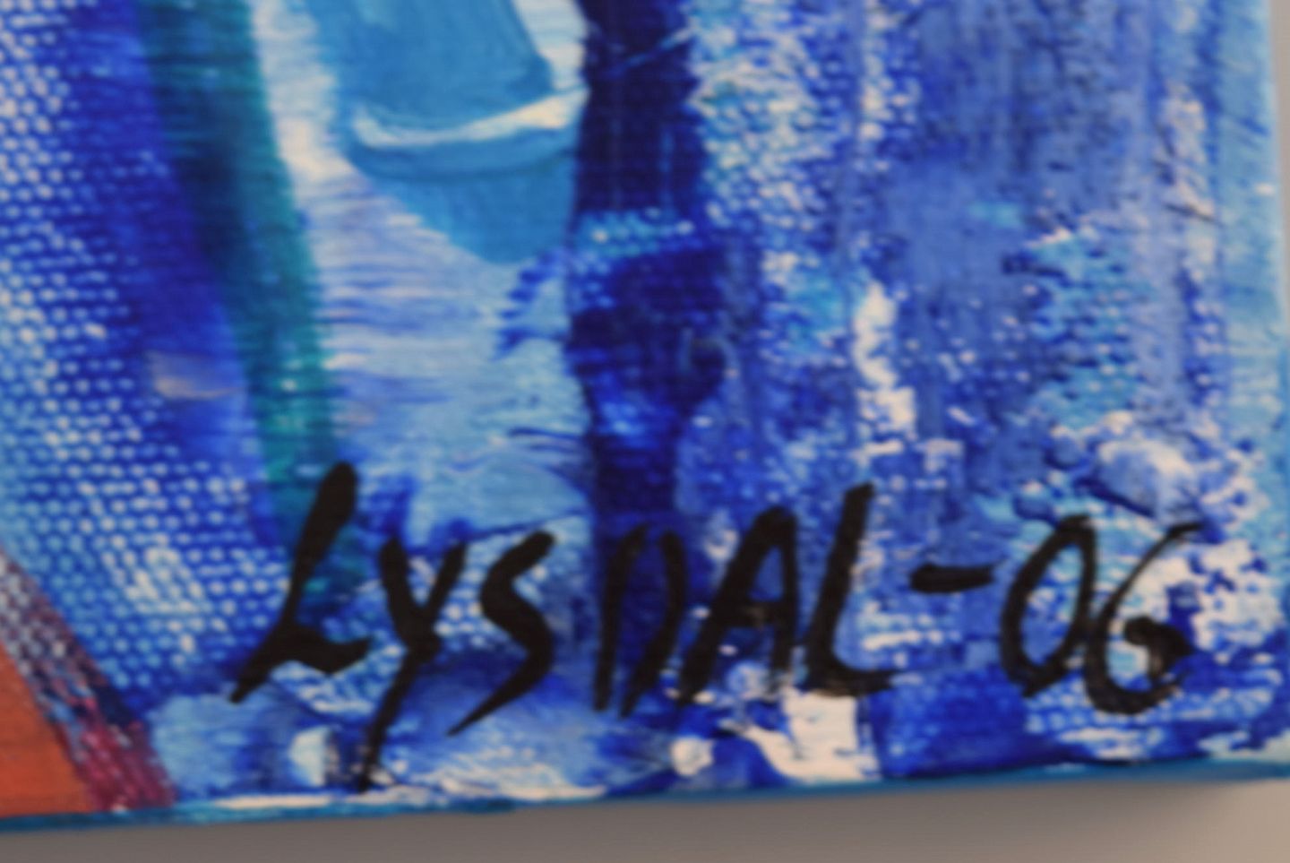 Ivy Lysdal, f 1937. Dansk keramiker og kunstmaler. Akryl på lærred. Abstrakt modernistisk maleri. Koloristisk palette. Dateret 2006.